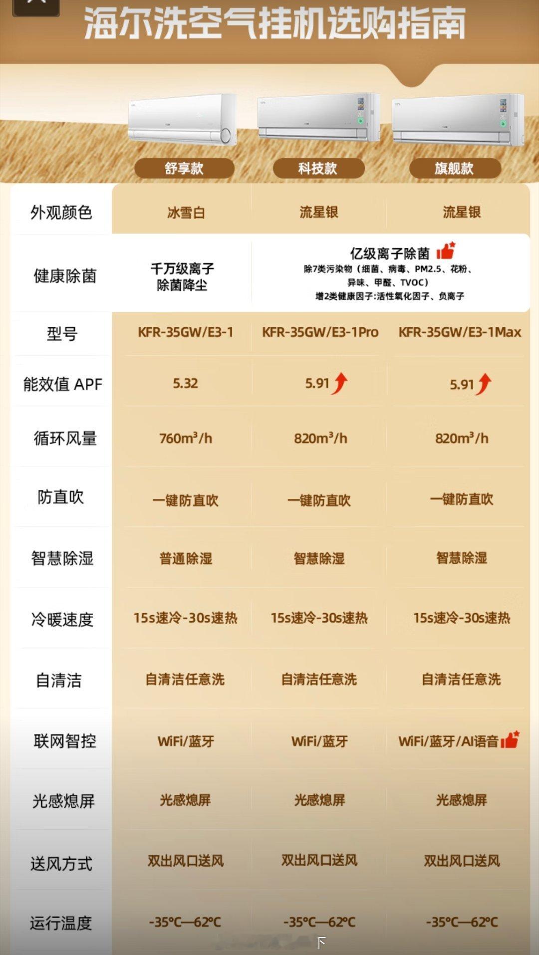 第一次听说海尔洗空气空调,但凡早点推出我就买的这款了,我现在家里一共三台海尔的空调,也是海尔的老用户了,一直用的感觉非常好。揭晓周云杰说的好空气带回家的答案原来就是海尔洗空气空调啊,简单了解了一下,确实很有实力!这款空调不仅可以自清洁还可以给室内送进干净清新的空气,一台机器可以干六台机器的活儿:冷暖空调+除湿机+空气清新机+空气消毒机+空气循环扇+空气净化器!还有常用常新,内外机都可以自清洁,太厉害了!