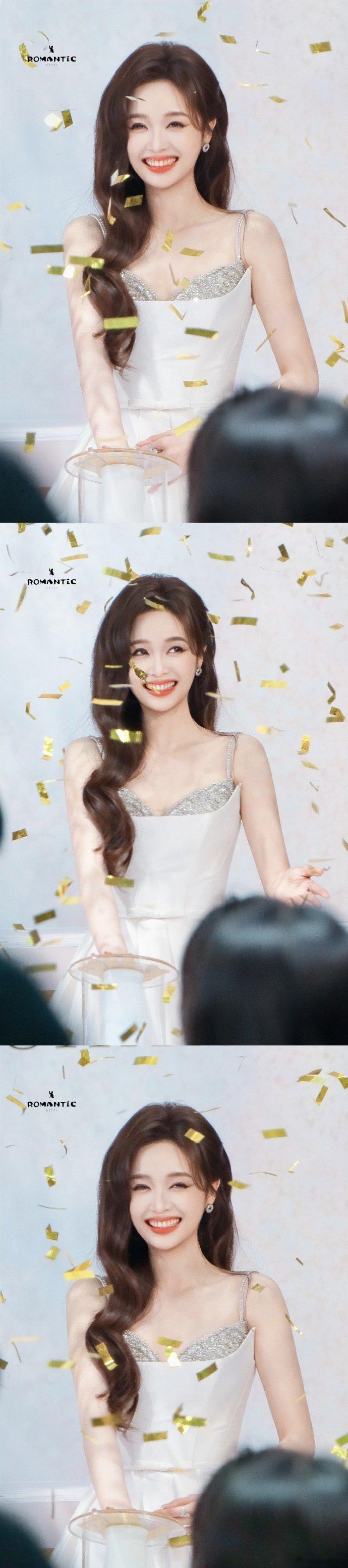 金色彩带雨中的吴宣仪 当金色雨丝纷纷扬扬,吴宣仪站在那片光芒里,笑得温柔又明亮,