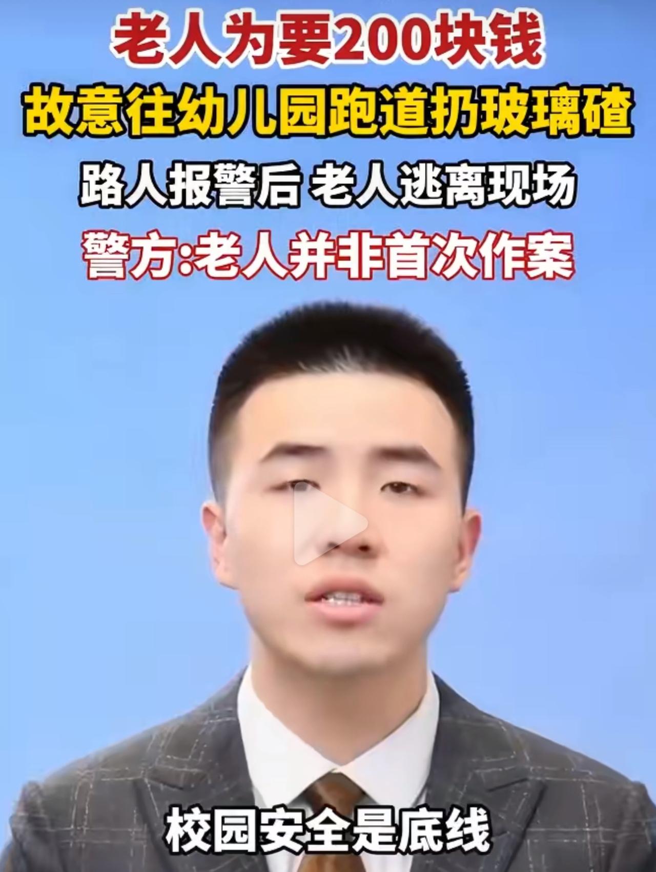 2026年4月22号,他隔着幼儿园的院墙,把罐头瓶砸得稀碎,一把一把把碎玻璃渣,全撒在孩子平时跑跳玩耍的跑道上。