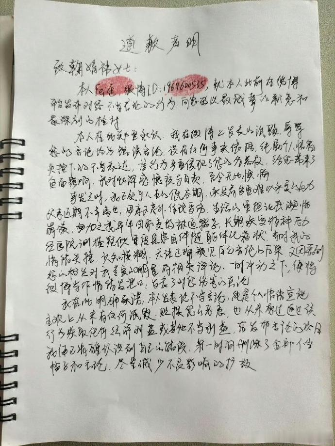 鞠婧祎黑粉手写道歉信了。这种惯黑最好道歉加赔偿,真的千万别轻易放过……