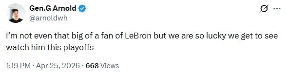 我甚至算不上勒布朗的忠实粉丝,但我们能在这次季后赛看到他的比赛,这真的太幸运了。