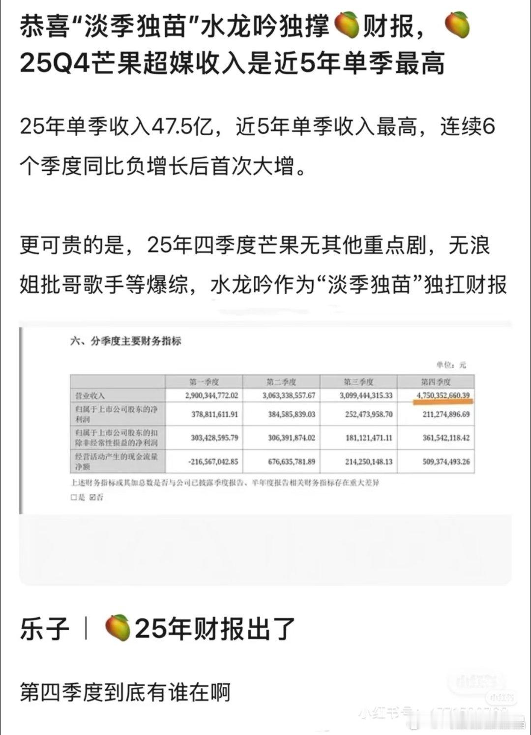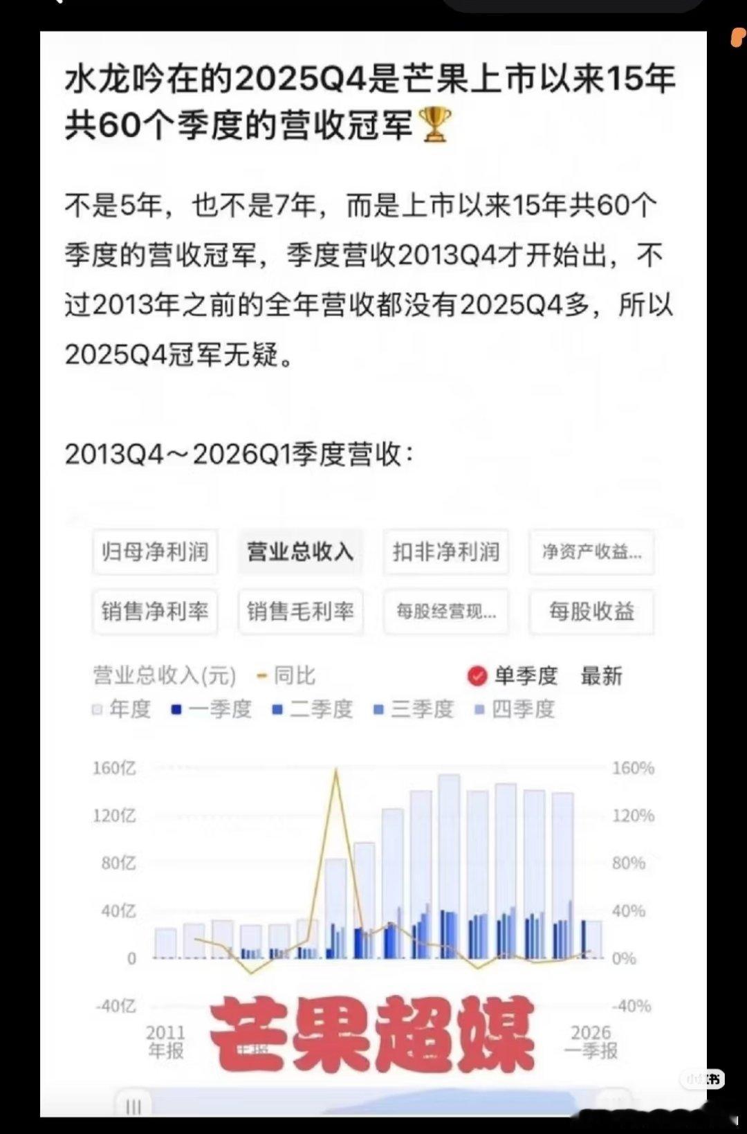 水龙吟在的2025Q4是芒果上市以来15年共60个季度的营收冠军。