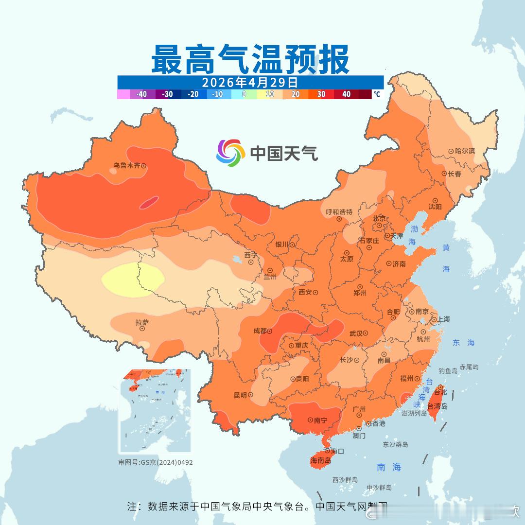 明天黄河以南多地,气温依然处于高位,普遍在25℃以上,湖北湖南江西广东广西海南部分地区超30℃。但之后因为冷空气和阴雨影响,中东部多地气温下滑。29日长江中下游多地最高气温不足20℃。