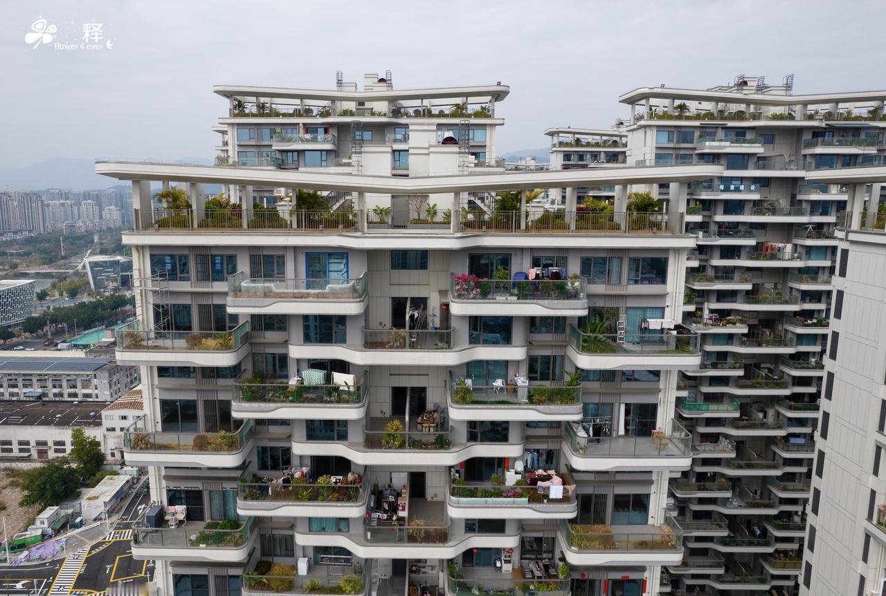 养花的属性也不行,自带的土层不够深,还没我家花箱深。即便所谓的4.5代住宅,土深也就50公分左右。种草本还行,木本根本不够。如果冠幅太大,台风的时候大树会直接吹倒甚至掉到楼下。