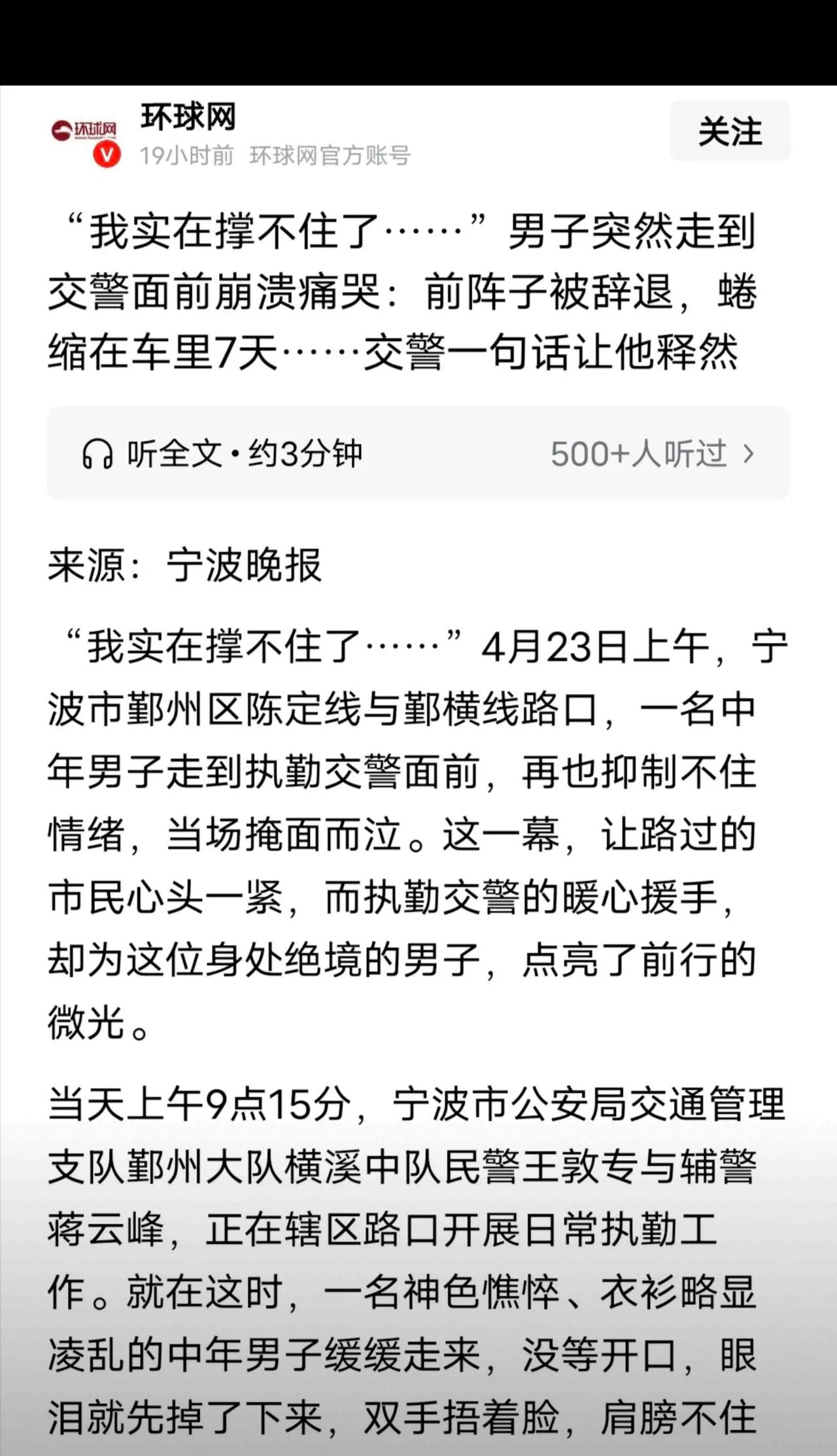 也特别庆幸,总有人在你跌入谷底时,递上一份温暖。交警的小小善举,看似不起眼,却给了这个男人重新前行的勇气。