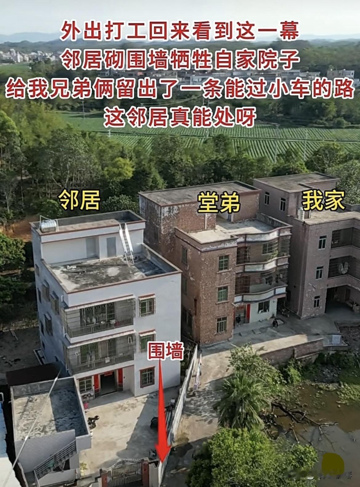 外出打工看到这一幕, 邻居砌围墙牺牲自家院子‼️ 给我兄弟俩留出了一条能过小车