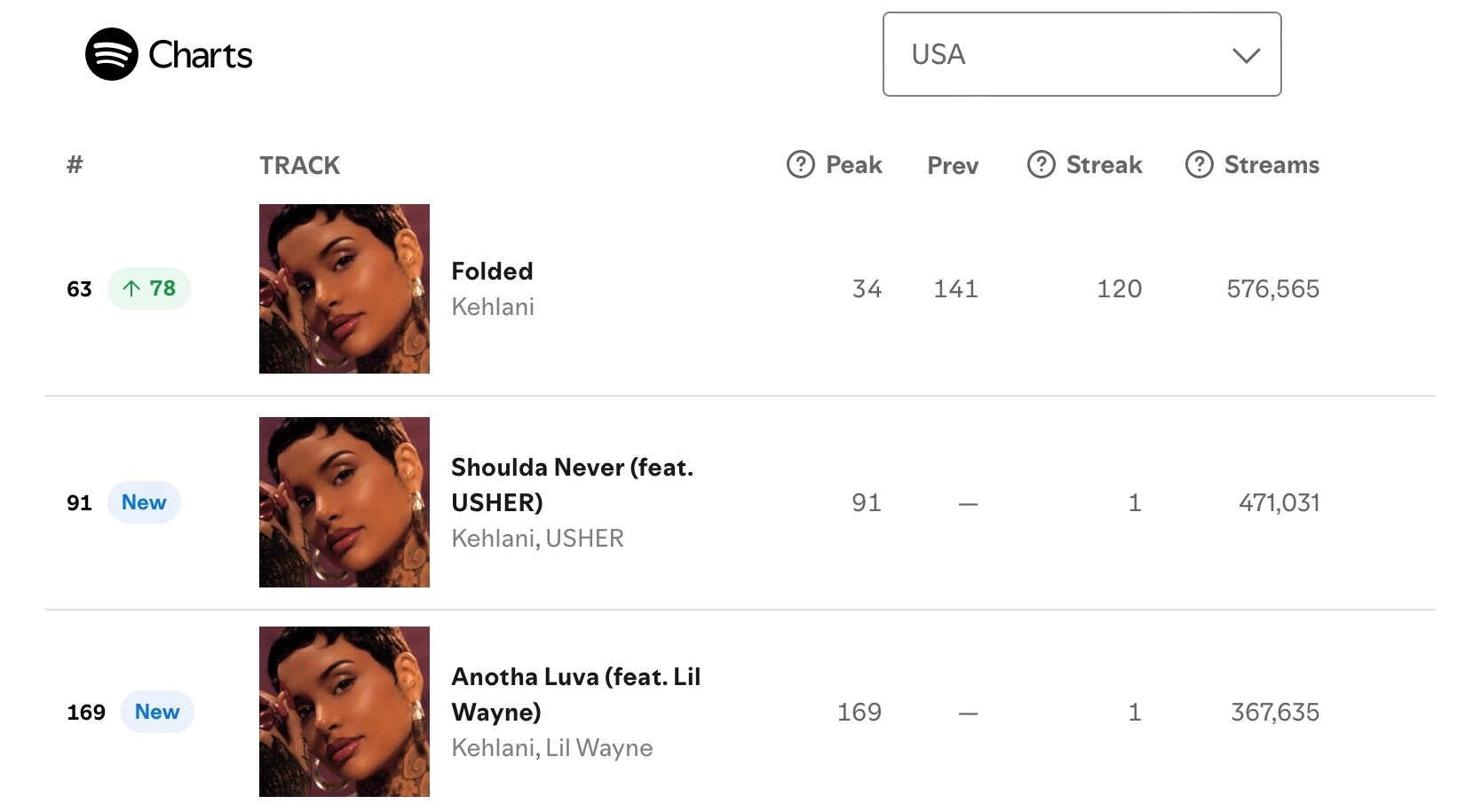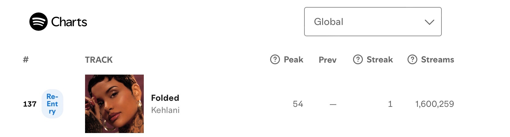 【流媒速览】Kehlani 全新同名大碟『Kehlani』Spotify全球/美区首日上榜流媒一览: