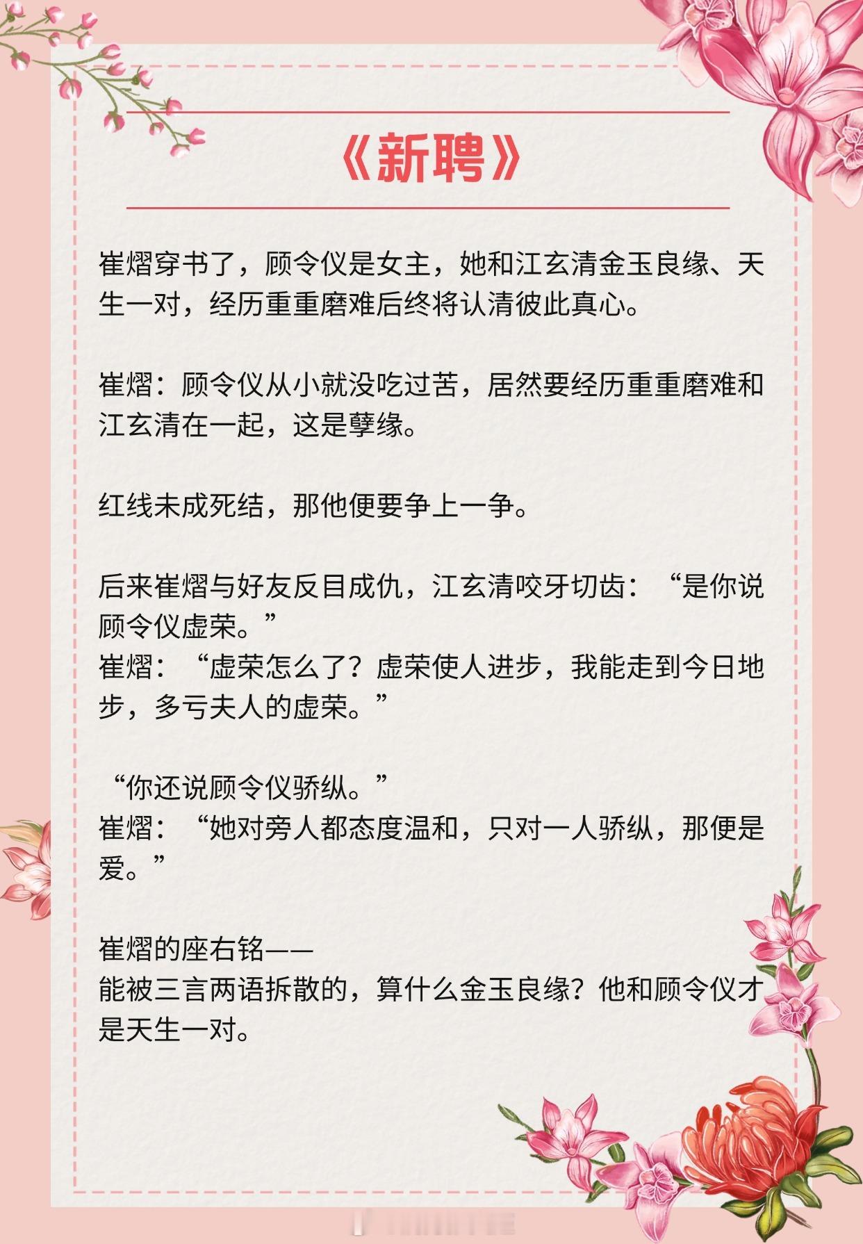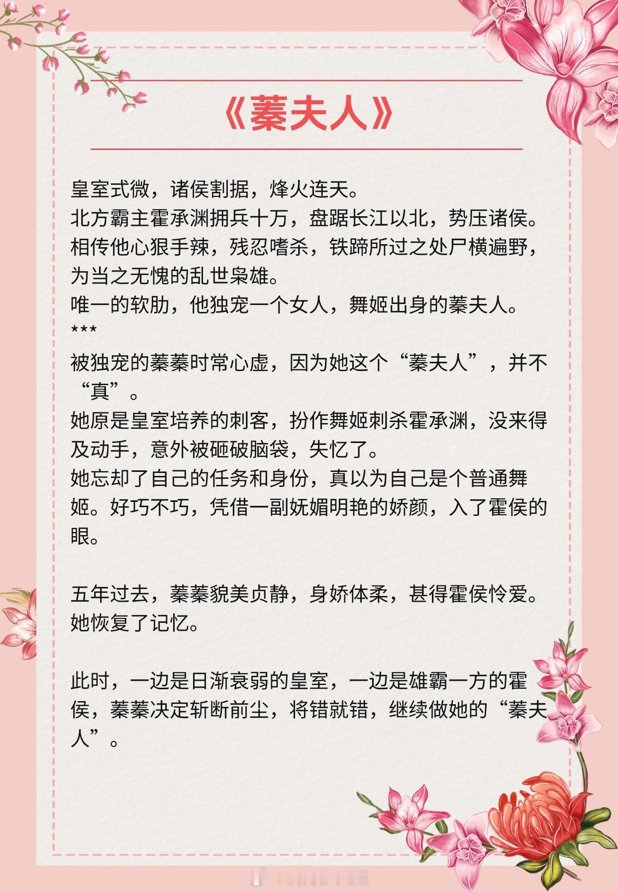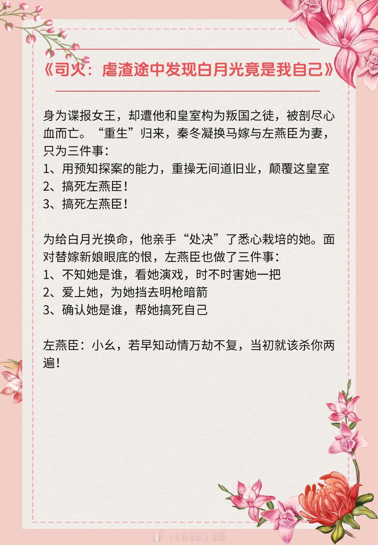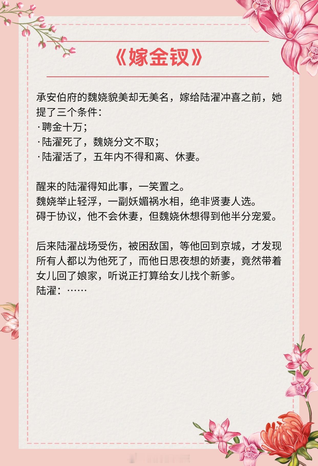 《司火:虐渣途中发现白月光竟是我自己》作者:墨舞碧歌《嫁金钗》作者:笑佳人《新聘》作者:榆莳《蓁夫人》作者:宁夙《拂玉》作者:白露栖木《大明生活日常》 作者:空巢独居客推文言情小说推荐推文