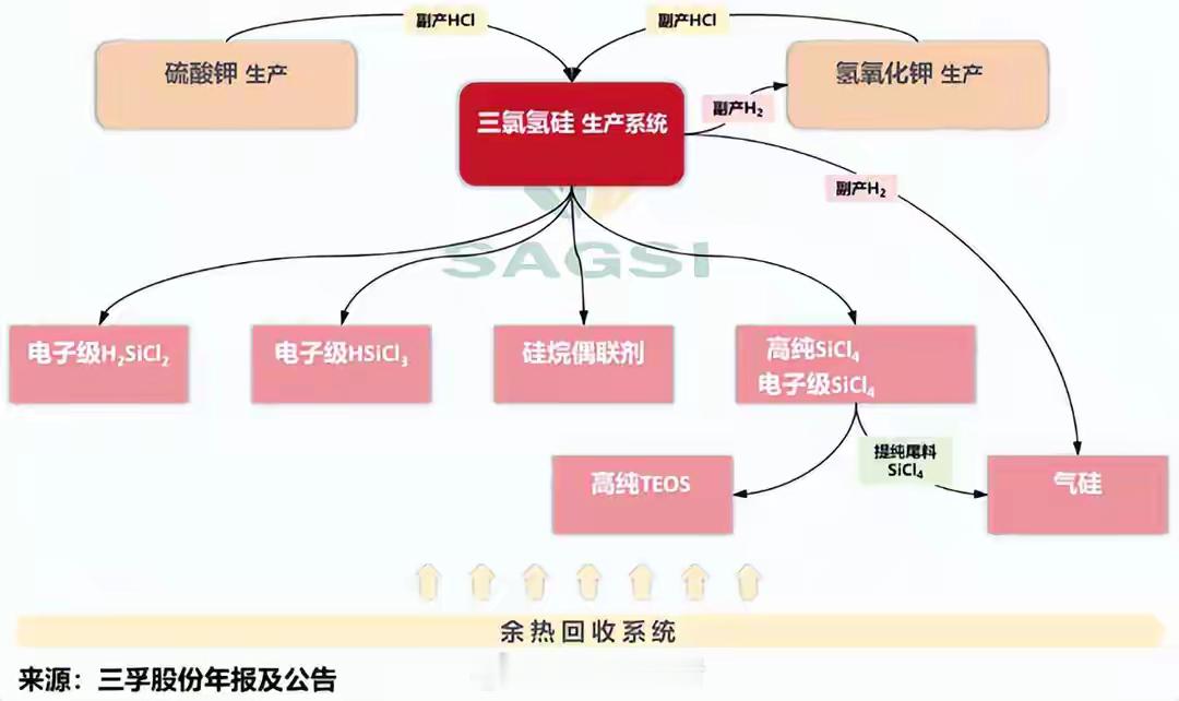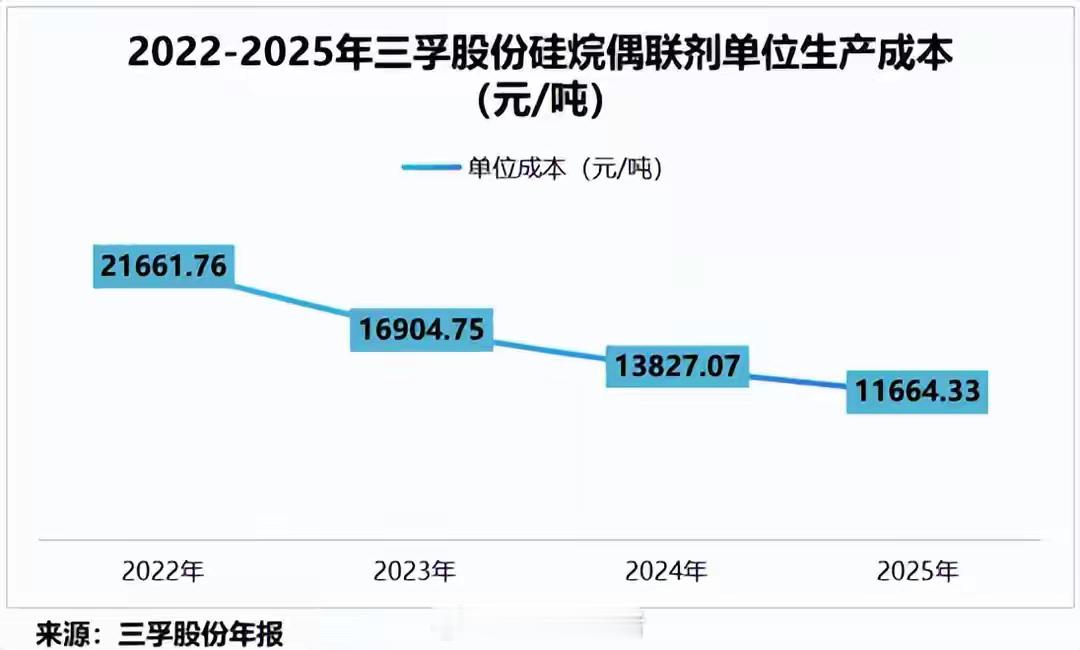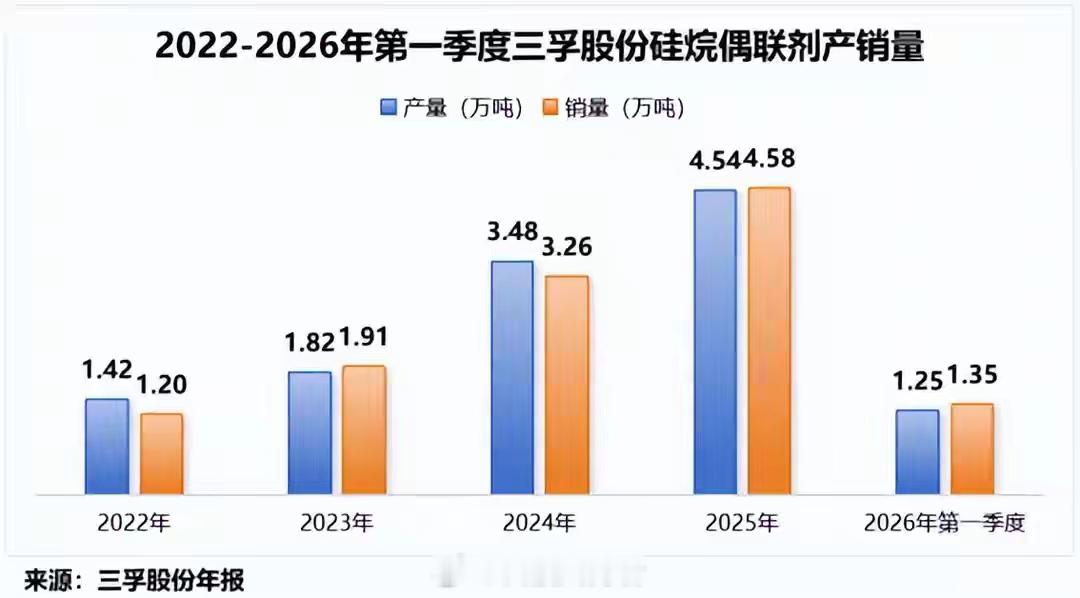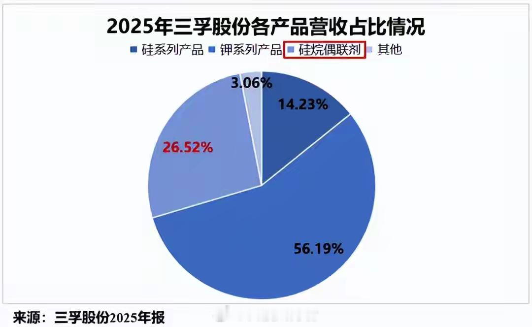 硅化工第一股,猛攻半导体!有机硅,涨涨涨!2026年,沉寂许久的硅产业链终于迎来上涨态势。以DMC为例,截至2026年4月21日,该产品均价已从年初的13500元/吨涨至14500元/吨,每吨平均上涨了1000元。外行人看热闹,内行人看门道。有机硅此番上涨,绝非偶然!说到底就以下两个原因。一是供给端收缩。此前,有机硅行业经历了漫长的产能过剩阵痛。2025年1月至10月,行业内单吨有机硅亏损达到1000元至2000元。面对这一困局,行业达成共识——减产提价。2025年11月起,行业整体开工率维持在70%左右。到了2026年3月,全行业加大减产力度,协定减产规模提升至35%,同步提价300元/吨,供给端持续收缩。二是需求端扩张。有机硅作为高性能新材料,在耐温、电绝缘、耐候等方面性能突出,被广泛应用于新能源汽车、机器人、医药医疗等新兴领域。以新能源汽车为例,数据显示,每辆传统汽车的车硅胶使用量约为2.5千克,而每辆新能源汽车的硅胶使用量约为20千克。据预测,到2028年国内新能源车市场规模有望超过2300万辆,这将有力拉动有机硅需求持续增长。那么,谁最有可能接住这轮涨价红利?三孚股份,或许值得一看。2025年全年,公司实现营收20.97亿元,同比增长18.49%;归母净利润8029.9万元,同比增长25.9%。进入2026年,三孚股份增长进一步提速。2026年一季度,公司营收与净利率分别同比增长30.91%、43.88%。这一表现并非偶然,原因无非以下三点:第一,深耕硅链。提到三孚股份,很多人第一反应是它的无机硅(三氯氢硅)业务,少有人注意到其有机硅(硅烷偶联剂)业务。事实上,早在2022年,三孚股份便把“硅烷偶联剂”业务从原有的“硅系列产品”中拆分出来,作为一个独立的业务板块单独披露。从营收结构看,硅烷偶联剂业务已成为公司当之无愧的第二大主业。2025年,公司硅烷偶联剂实现营收5.56亿元,占总营收的26.52%;而2022年,这一占比仅为11.83%。那么问题来了:三孚股份为什么要发展硅烷偶联剂业务?三孚股份的根基在于三氯氢硅,这是生产多晶硅和硅烷偶联剂的核心原料。以前,公司主要锚定多晶硅这一下游。随着光伏产业爆发,三氯氢硅需求一度水涨船高。但现在,情况变了。2025年,国内多晶硅产量约为131.9万吨,同比下降28.4%,为近年来首次负增长。受此影响,三氯氢硅的需求增速有所下滑。为对冲单一行业波动,公司大力发展三氯氢硅的另一下游——硅烷偶联剂。2026年第一季度,三孚股份硅烷偶联剂产品产量达到1.25万吨,同比增长55.98%;销量达到1.35万吨,同比大增59.93%。第二,打造循环经济。三孚股份最核心的竞争力,不是硅烷偶联剂这一单品,而是其难以复制的“硅-钾”循环经济模式。这套体系有多巧妙?简单来说,就是让副产品“变废为宝”:公司三氯氢硅生产过程中产生的副产品氢气,是氢氧化钾生产所需能源;而钾系列产品生产过程中产生的副产品氯化氢,又是三氯氢硅的关键原料。这种模式为公司带来了两重好处:一是三氯氢硅生产所需的氯化氢实现了内部供应;二是循环系统中的各种物料均直接运送至各生产系统,降低了运输成本。以硅烷偶联剂产品为例,受益于循环经济,2025年该产品单位成本从2022年的21662元/吨一路降至11664元/吨,三年累计降幅达46%。不过,成本优势尚未充分体现在利润端。2025年,公司硅烷偶联剂产品毛利率仅3.98%。这并非循环经济模式失效,而是产能利用率仍有提升空间。截至2025年末,公司硅烷偶联剂系列产品产能为8.7万吨,产能利用率仅67.86%。随着循环经济体系日趋完善,硅烷偶联剂产品产能利用率有望提升,进一步巩固成本优势,改善利润。第三,押注电子特气。当前,三孚股份正加速布局半导体材料——电子特气产品。电子特气是半导体制造的关键支撑材料,广泛应用于刻蚀、沉积、掺杂等工艺。目前,我国在部分电子特气上已实现批量供应,但电子级二氯二氢硅、电子级四氯化硅等产品国产化程度依然较低。为此,三孚股份主动扛起国产化大旗。2021年,公司电子级二氯二氢硅、电子级三氯氢硅产品通过IATF16949:2016认证。截至2025年末,公司的电子级二氯二氢硅、电子级三氯氢硅和电子级四氯化硅三类产品均已实现稳定生产。但从实际产出看,2025年这三类产品的产能利用率分别只有26.35%、28.12%和4.61%,说明目前还处在市场开拓和客户验证的阶段,产量还没真正跟上来。这也意味着,一旦下游认证通过、订单放量,公司电子特气业务有望迎来新增长。写在最后!涨价是风,能走多远,终究看内功。而三孚股份内功很硬:左手有机硅放量,右手“硅-钾”循环,电子特气还在憋大招。周期来了能赚钱,走了也扛得住——这才是真本事。