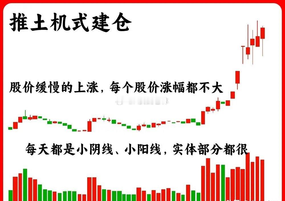 注意了!这是一个主力建仓的合集,主力意图往往是散户的薄弱环节,主力建仓说白了就是,市场筹码像一个位置聚集的过程。所以只要我们够细心,就可以轻松分辨。今天老林就把主力建仓的七种手法,一一分享出来。还是老规矩,点赞收藏或评论888支持一下,老林每天分享炒股干货,以免以后想温习找不到了一、打压式建仓是主力最狠,最为常见的一种手法。股价在低位横盘阶段,股价突然出现大幅下跌,同时成交量开始放大,连续的中大阴线出现,伴随着长下影线,在分时图里,一般会出放量急跌,缩量企稳的走势。建仓的末期,股价会出现温和企稳,反弹向上。这个建仓方式周期一般会4周以内,利用空间去换底部筹码。二、反弹式建仓整个建仓阶段,比较温和,主力建仓的时间周期比较长,一般会按月来计算。股价在低位弱势反弹,所以都是小阴线小阳线,可能出现连续的小阳线,但是不会出现中大阳线的可能,阳线会比阴线总体要多,成交量是处于温和放大。所以这种建仓是很少吸引市场目光,偷偷吸筹。而且反弹吸筹的整体幅度不会很大。三、推土机式建仓这是主力边拉边吸筹的过程,用时间去换空间。整个建仓过程里,都是小阴线小阳线,实体部分是很小的,而且每天涨幅不会超过3%,一般会控制1%左右。所以这种慢慢建仓的过程里,像均线就会出现多头趋势。这种建仓手法一般会在中大盘股上,建仓时间周期会更长,会在3个月左右四、疾风暴雨式建仓这种手法比较强势,而且散户会措手不及。股价在低位出现连续中大阳线,或是连续涨停板。短期的涨幅往往就会超过30%以上,而且成交量明显出现放大量。这是主力想快速的完成建仓,用速度来换筹码。早盘开盘就拉升,全天很少回调,所以这种建仓时间周期往往会在几天内五、连板建仓主力建仓最为强势的一种手法,和第四种差不多,股价短期出现连续涨停板,一字板或是T字板,开盘就封,换手很充分。主力没有办法低位建仓,只能高位连板抢筹,这种建仓手法,一般会有消息的配合,还是突发性六、假破底建仓这是主力挖坑的一种手法,和打压式建仓差不多。股价处于横盘阶段,股价突然大幅下跌,跌破下方支撑,形成破位下跌。破位以后股价又快速收回,就形成比较长的下影线,走出比较深的V型反转。这就是主力故意挖坑的一种手法,而且整个节奏会比较快。七、逆势建仓大盘出现下跌或是盘整的阶段,个股能走出独立的行情,大盘跌,个股出现逆势上涨,表现明显强于大盘。而且这种走势能持续性,同时还有成交量的配合,形成放量上涨。这就是主力的边抗跌,边吸筹的表现了。典型到强势股表现。这种建仓时间周期一般会在1到3个月里。要注意的是,如果是无量上涨,而且还在高位,那就要小心了好了!以上就是主力七种建仓手法。下方我准备了对应的案例图,建议文章和案例图一起看,好加深记忆。希望对大家有启发
