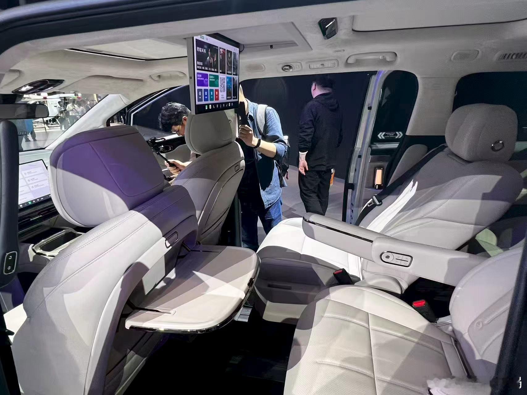 2、长宽高分别为5000/1900/1778mm,轴距为3000mm,二排提供两个独立的豪华座椅,带有腿托、加热、通风、按摩功能,后排提供有17.3英寸屏幕,冰箱和二排小桌板等豪华配置也没有缺席。
