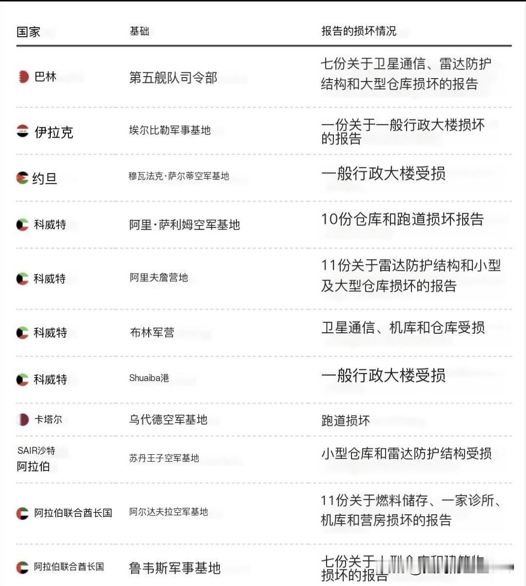 而阿联酋的雷达系统,以及巴林的卫星通信系统也遭到了损坏,不过目前尚不清楚这两个国家是否愿意承担维修费用。