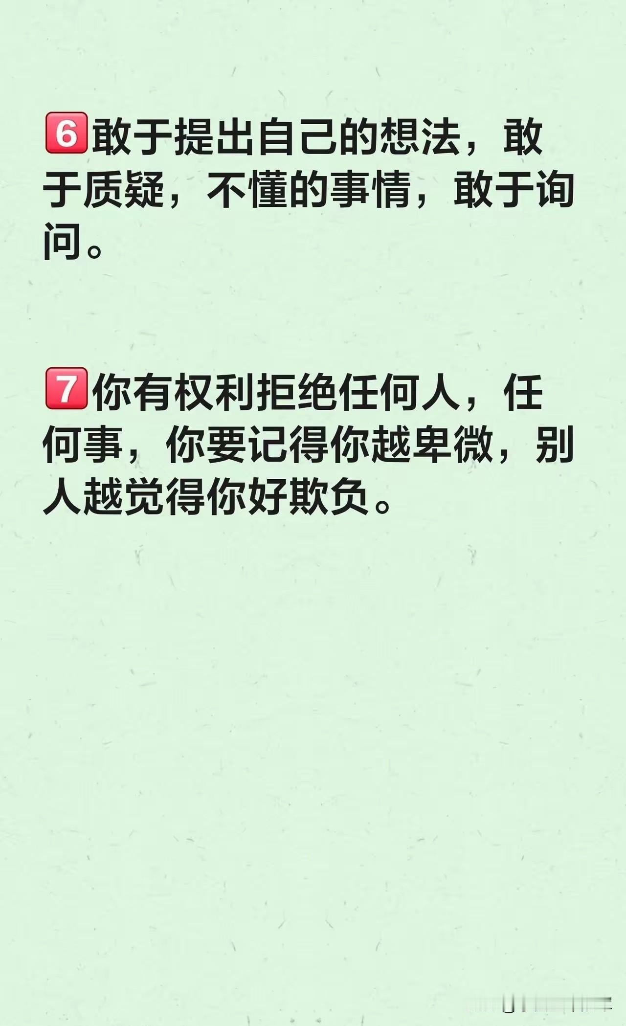 其实,不被欺负的关键,就是让别人知道你不好惹。你的态度、气场和边界感,就是你的保护盾。从今天起,别再当老好人,别再卑微讨好,挺直腰板、守住底线,别人自然不敢随便拿捏你。