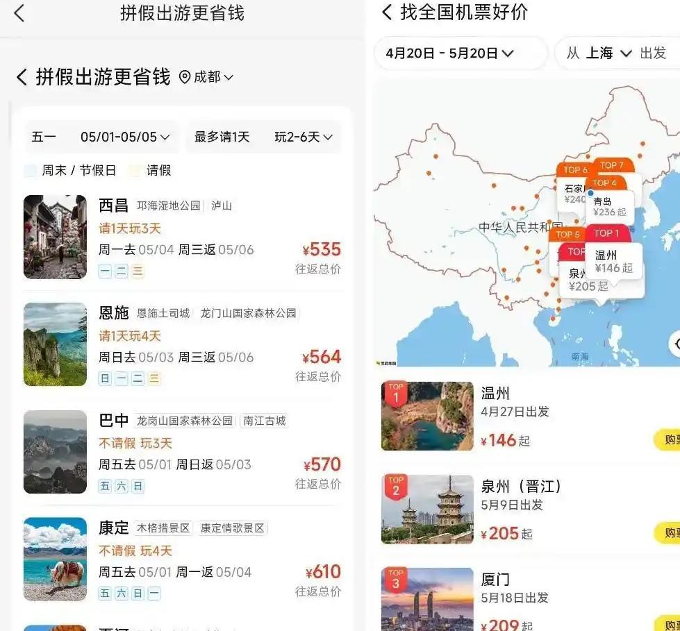 去年五一我跟风赶行程,一天跑五六个景点,脚都走肿了,回来累得缓了好几天,完全没体会到放假的快乐。今年我彻底想开了,旅行就该是慢节奏行程,不用赶早贪黑,不用忙着拍照打卡,静下心感受风景就够了。看了美团最新的出行数据才发现,不止我这么想,机票预订量同比涨了28%,超七成酒店都是为旅游度假订的,连住7天以上的民宿订单直接涨了40%,果然大家都爱上了“住得更久、玩得更深”的度假方式。