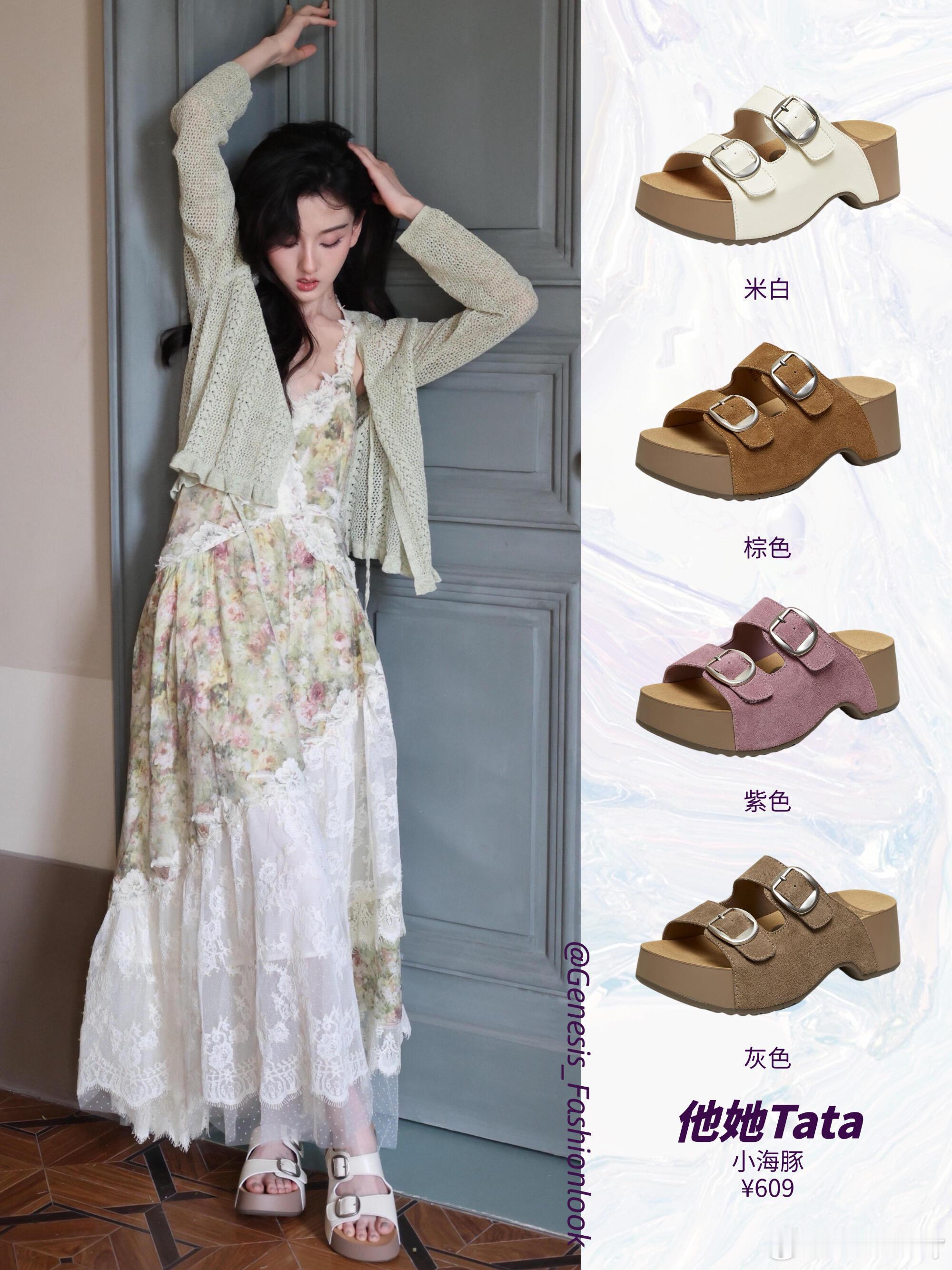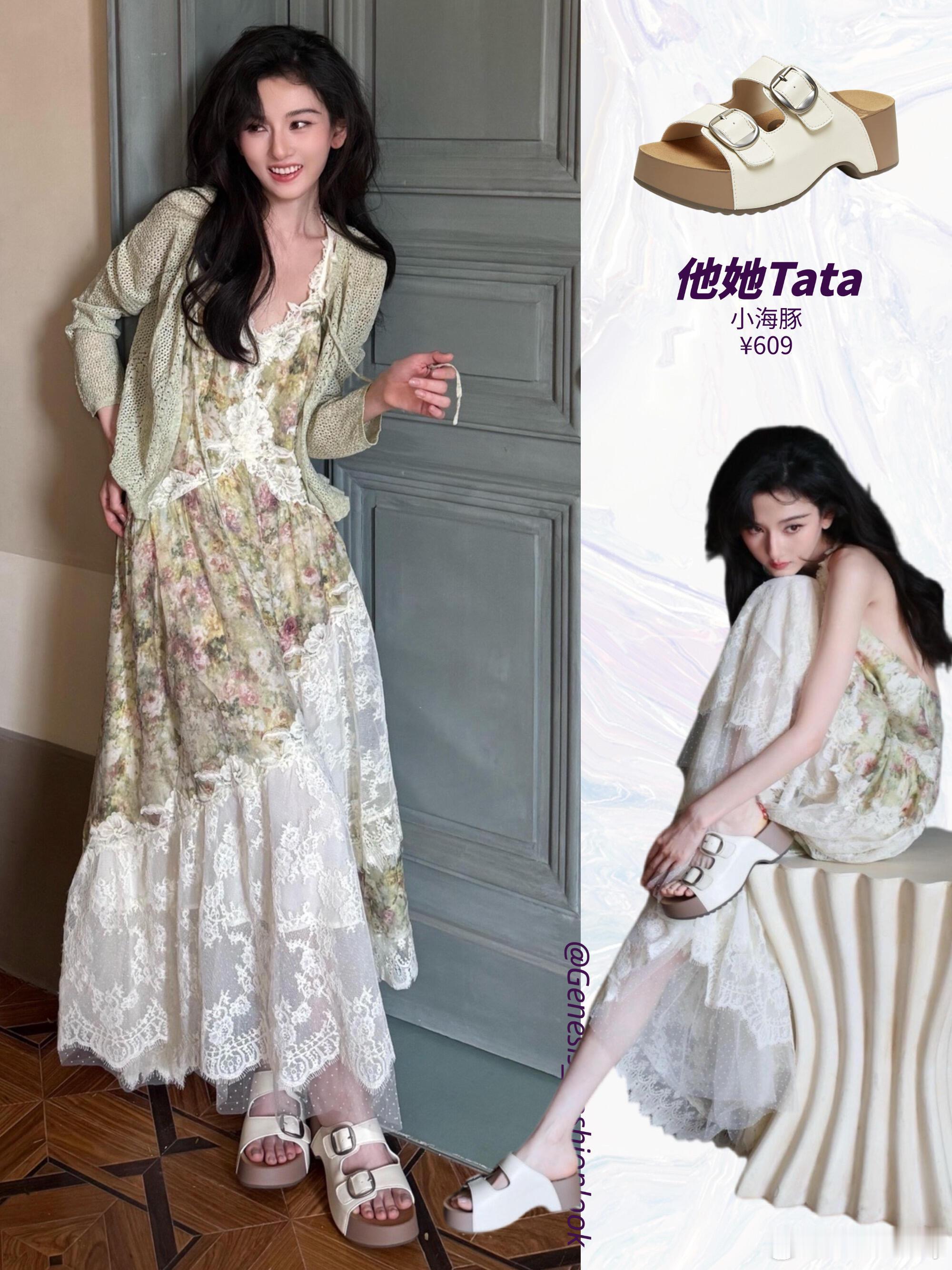 针织开衫+碎花裙+勃肯鞋=懒人版画报公式