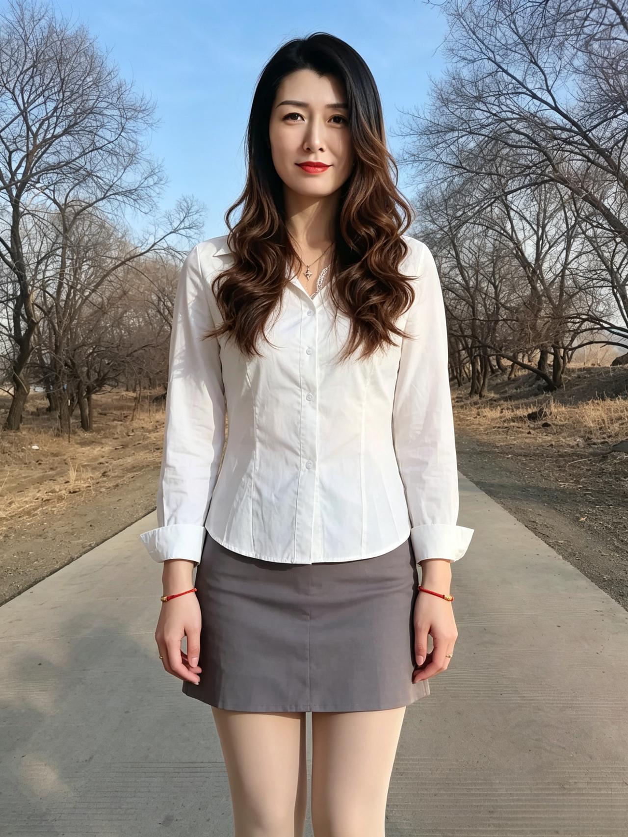 晴郊日暖影悠然,眉黛含春韵满天。 俗世千般皆逊色,清风偏爱美人肩。