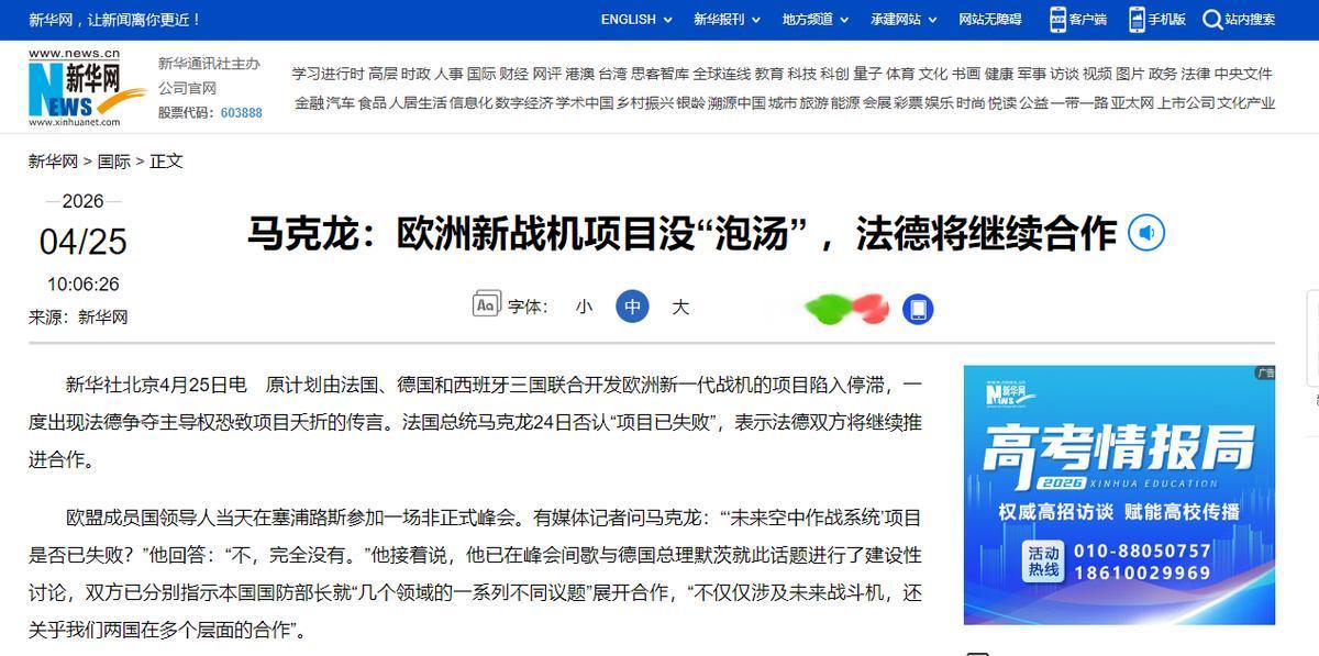 法国总统马克龙直接出面表态,说项目根本没失败,法国和德国会放下别扭,接着合作,把这个新战机搞下去。