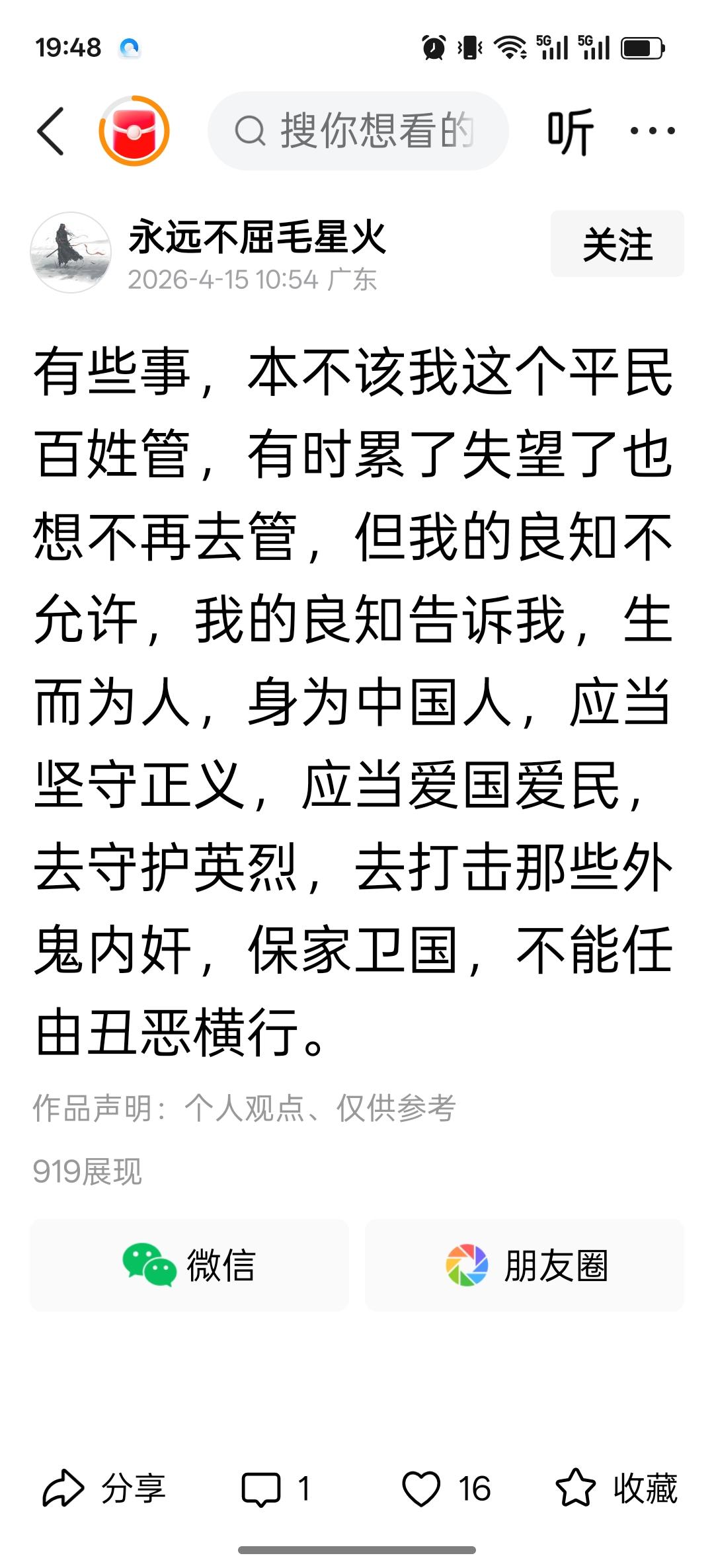 孟子说过,地位卑下而妄自谈论国家大事,这是不小的罪过。网络小红人毛星火,整天价把坚守文化阵地,打击文化汉奸挂在嘴边,絮絮叨叨的。