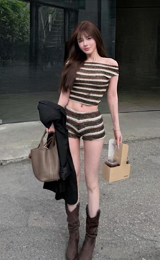 复古条纹套装搭配松弛黑西装,甜酷氛围直接拉满。 随手拎上包包、揣好冰美式,利落