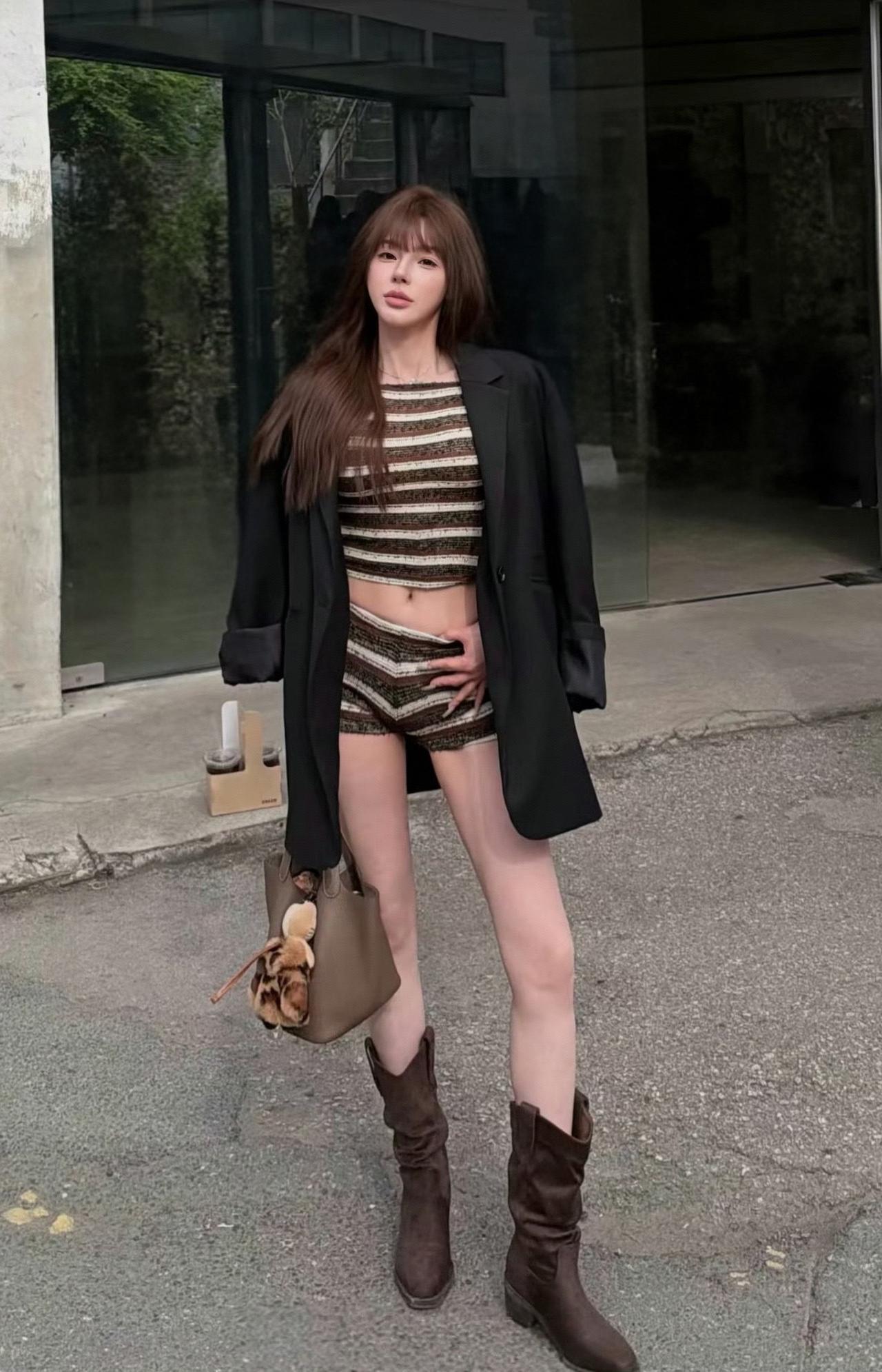 随手拎上包包、揣好冰美式,利落露腰设计+慵懒长靴,随性又精致,把秋日街头的松弛时髦感狠狠拿捏,日常出街氛围感稳稳在线。
