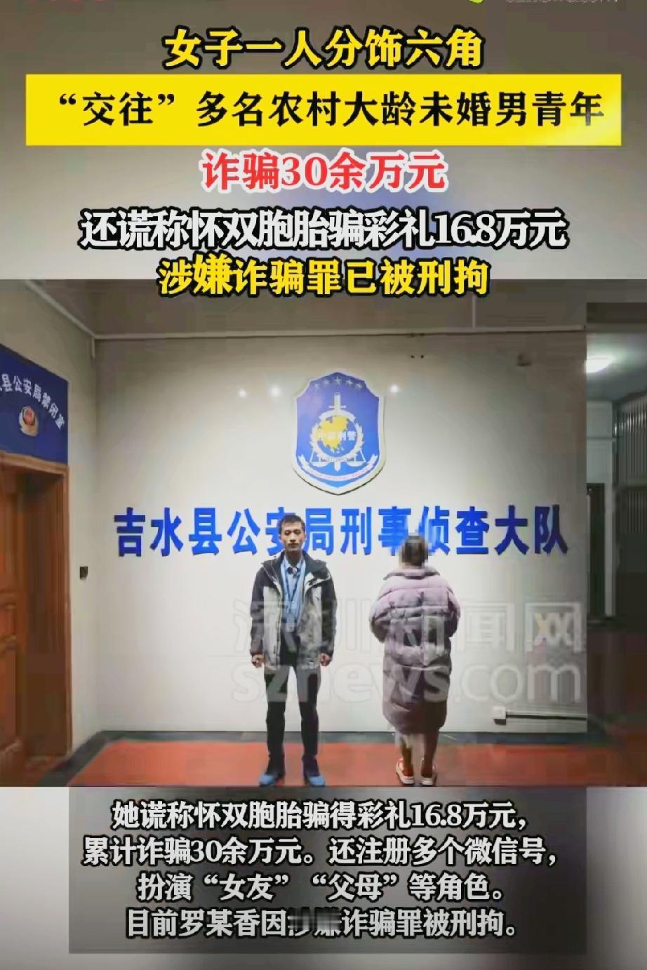 女子“交往”多名农村大龄单身男青年!诈骗30多万,其中还谎称怀双胞胎诈骗彩礼16.8万,因为涉嫌诈骗罪已被刑事拘留。