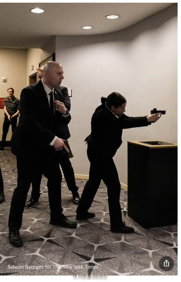 当总统和第一夫人梅拉尼娅·特朗普被迅速护送离场时,持枪的安全官员出现在了讲台上。