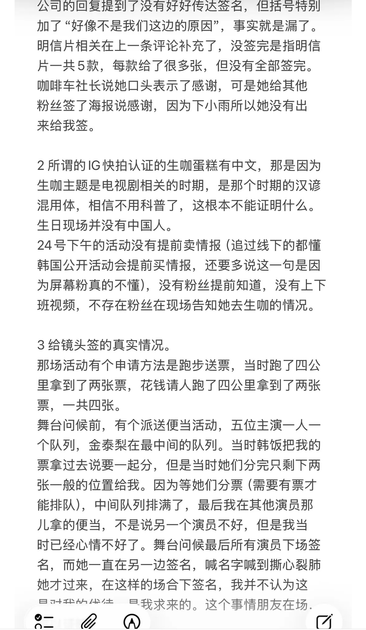 对于其他粉丝对金泰梨的澄清,她发了线下证明图,说自己的确被漏签了,公司邮件回复还推卸责任,自己喊的撕心裂肺才获得镜头签,其他人没签是因为根本没有镜头……