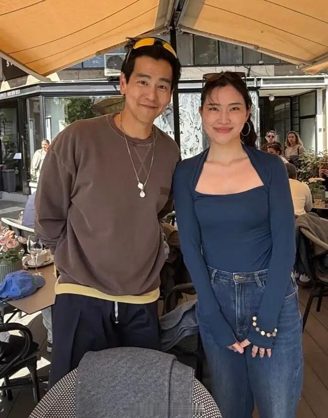 彭于晏在布达佩斯一家户外餐厅吃西餐被偶遇,他的穿衣打扮时尚有型,脸上没有化妆,皮