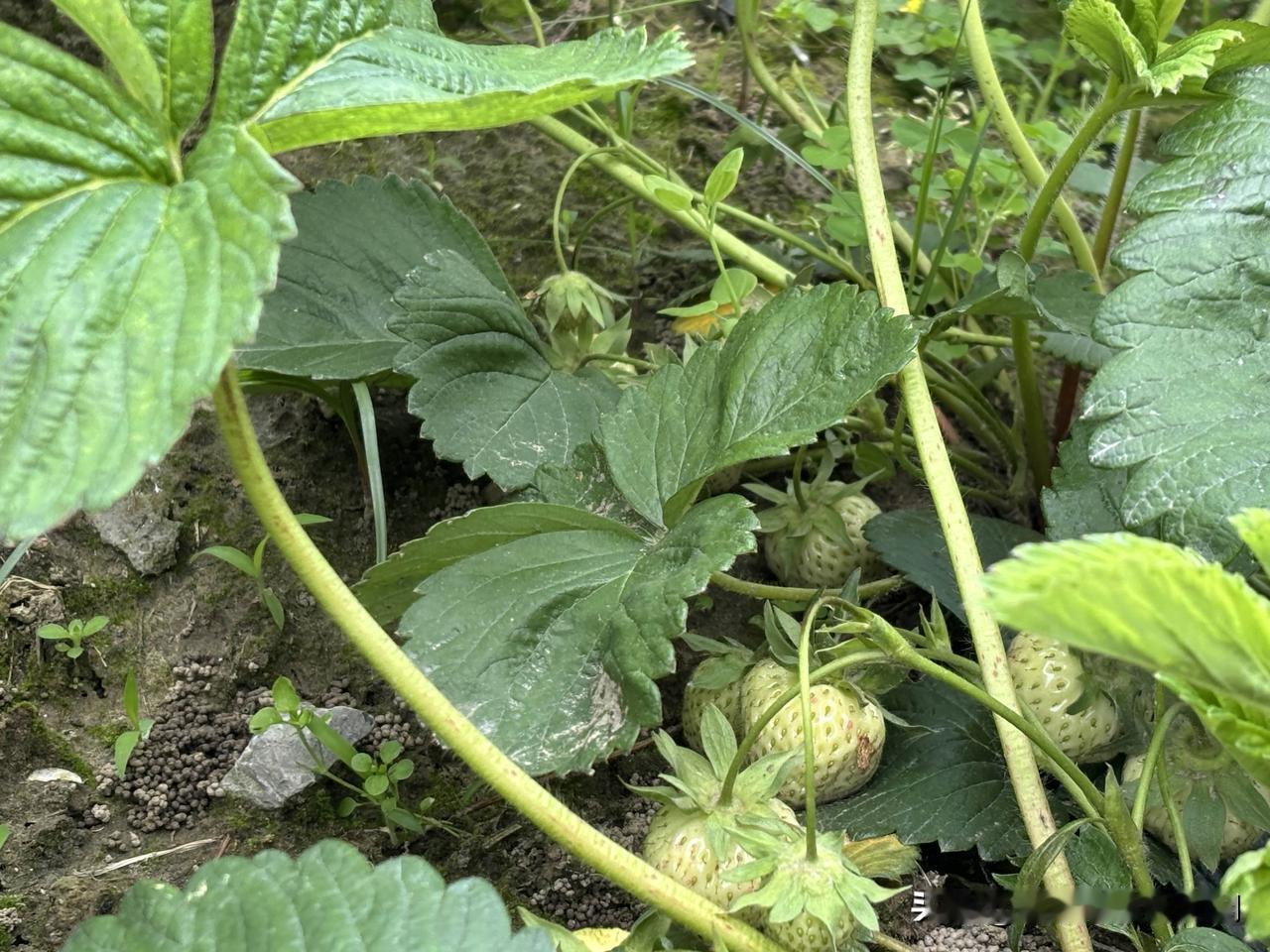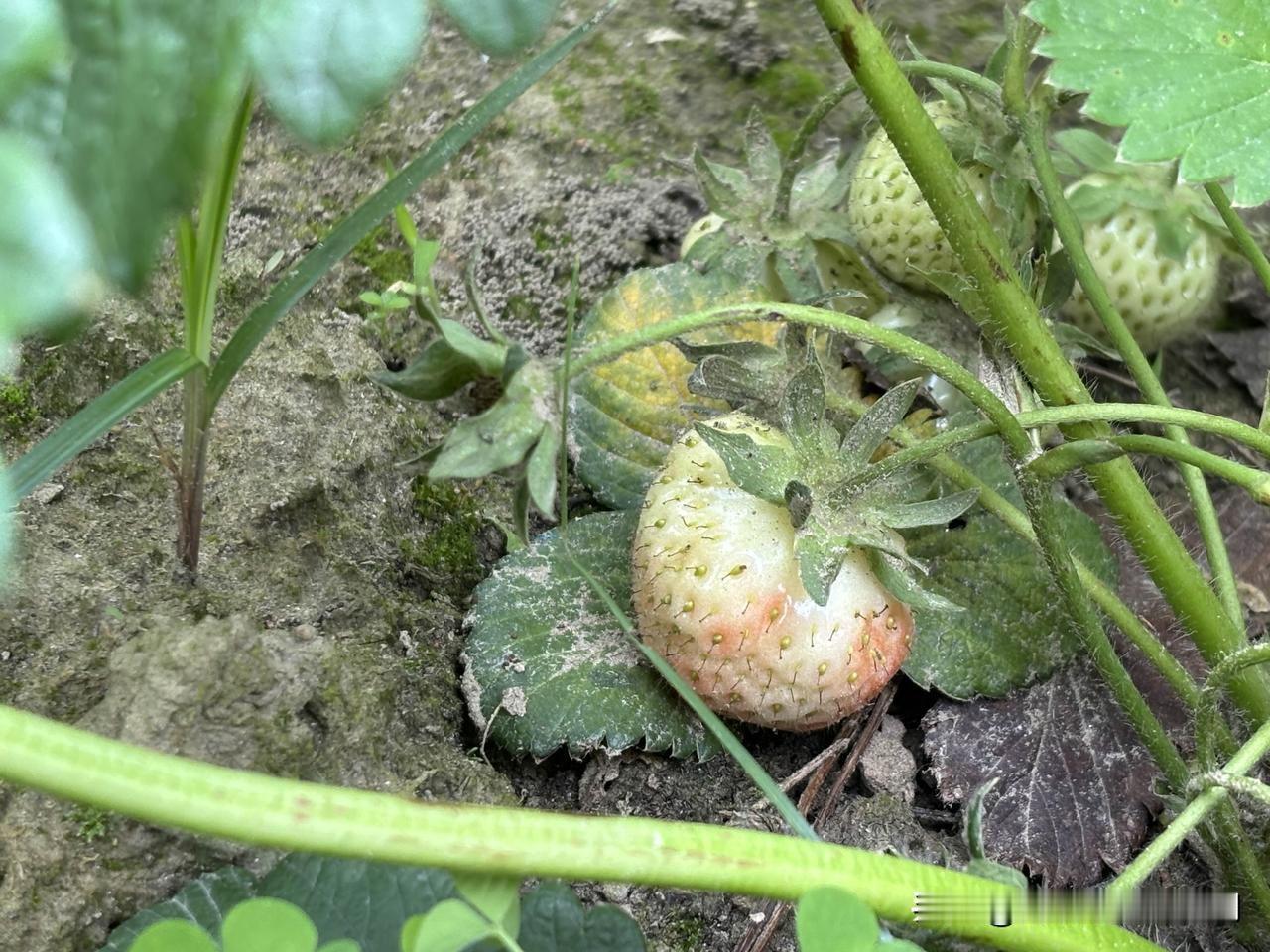草莓有几颗已经泛红了,今天下午应该就能吃了。