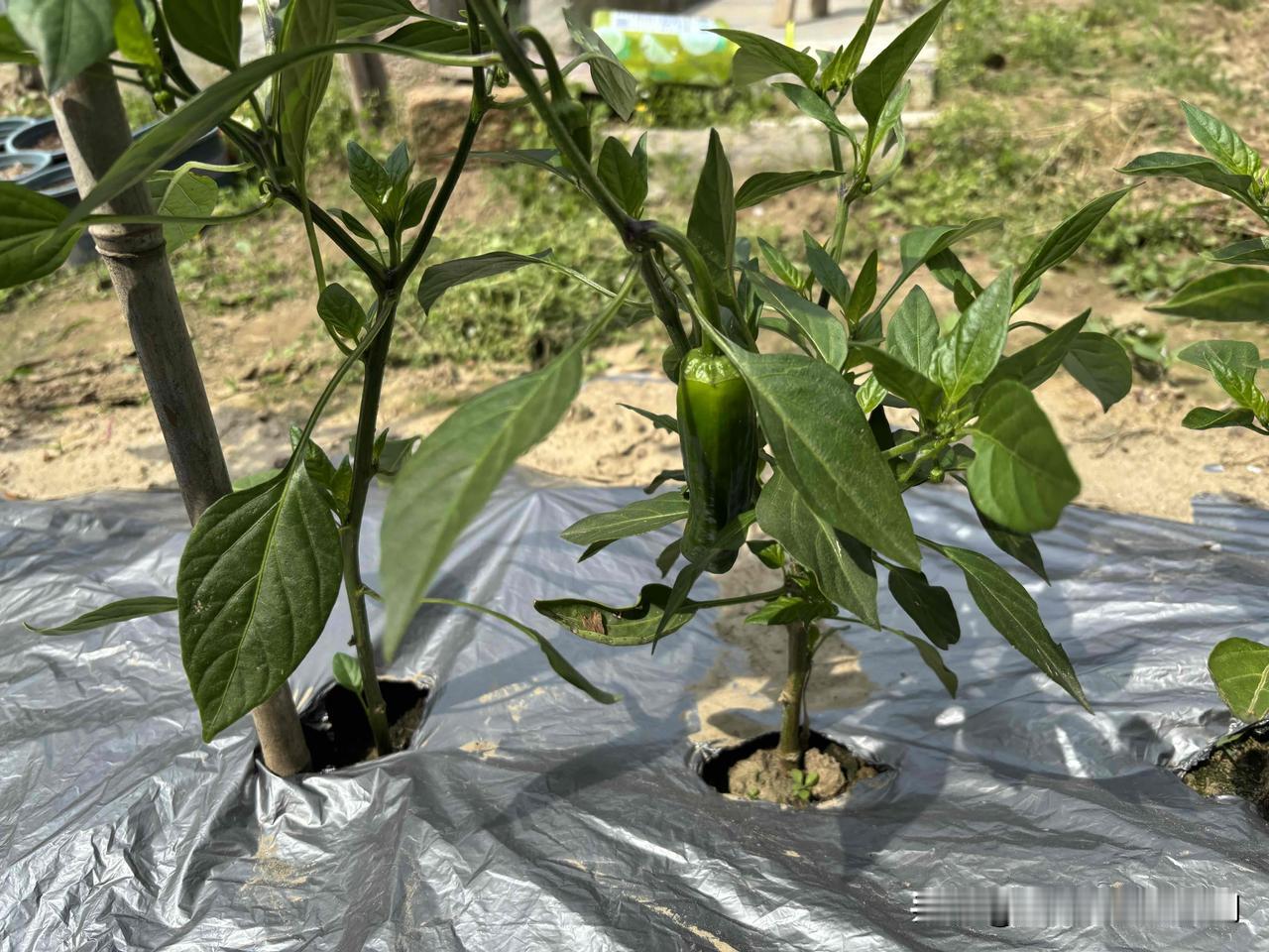 茄子和辣椒已经栽下了好几批,栽得早一些的辣椒,已经长出了一支辣椒。晚一些的还是小苗。