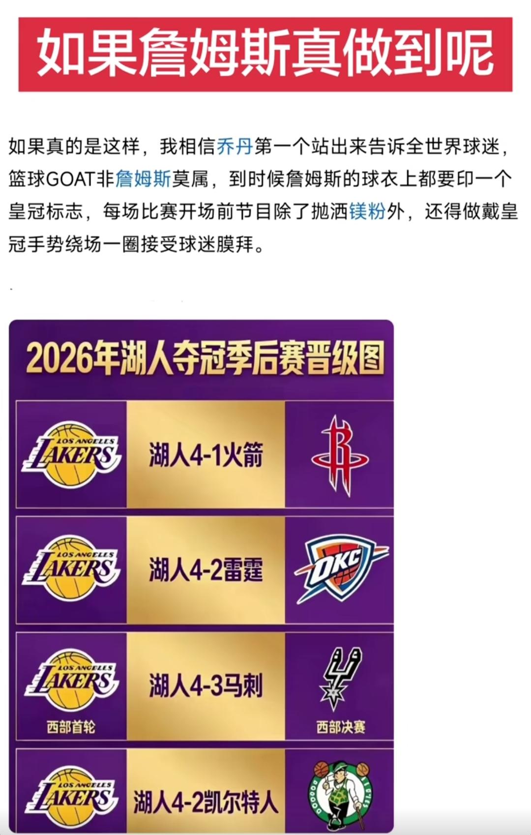 湖人夺冠晋级图:詹姆斯的荣耀时刻,乔丹也会亲自出来宣布,勒布朗詹姆斯就是历史第一