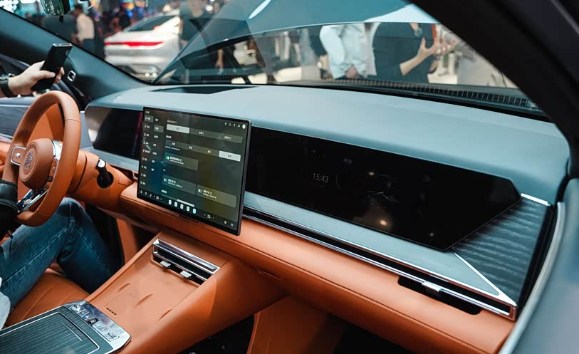 大唐的内饰走轻奢路线,软皮包裹铺满全车。我特别喜欢那个浅棕色的配色,能给人一种轻奢的高级感,并且中控台也采用了大面积的软质材料,摸起来很舒服。三块大屏搭配抬头显示,非常的有科技感和豪华感,观影、办公、投屏随心切换,后排还有专属吸顶娱乐屏。