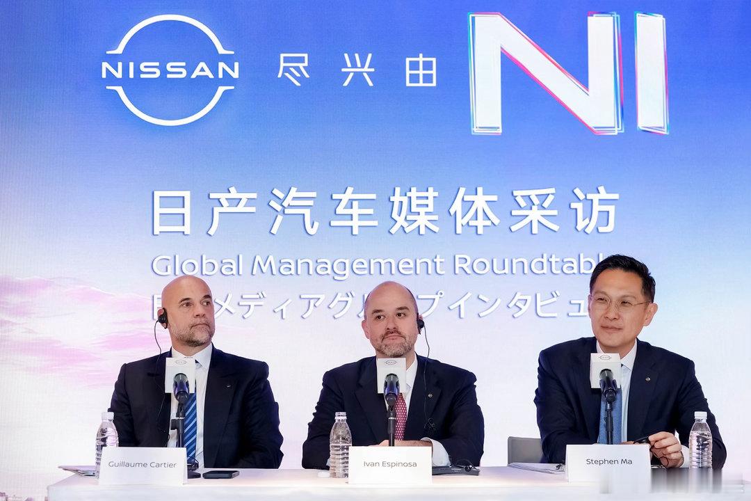 各位媒体老师,2026北京车展日产展台举办高管群访,日产全球CEO伊凡·埃斯皮诺萨、中国区主席马智欣、首席绩效官Guillaume Cartier出席,围绕产品战略、中国市场、新能源、AI技术、出口布局等核心问题集中回应,释放重磅信号。