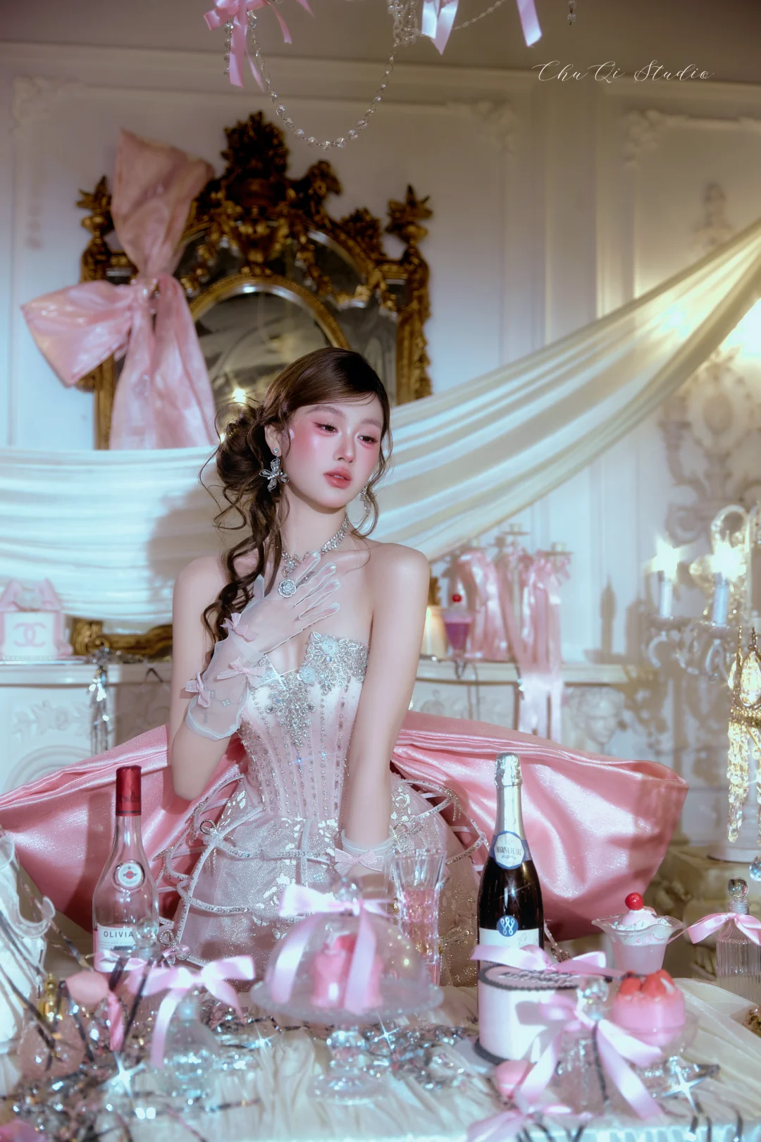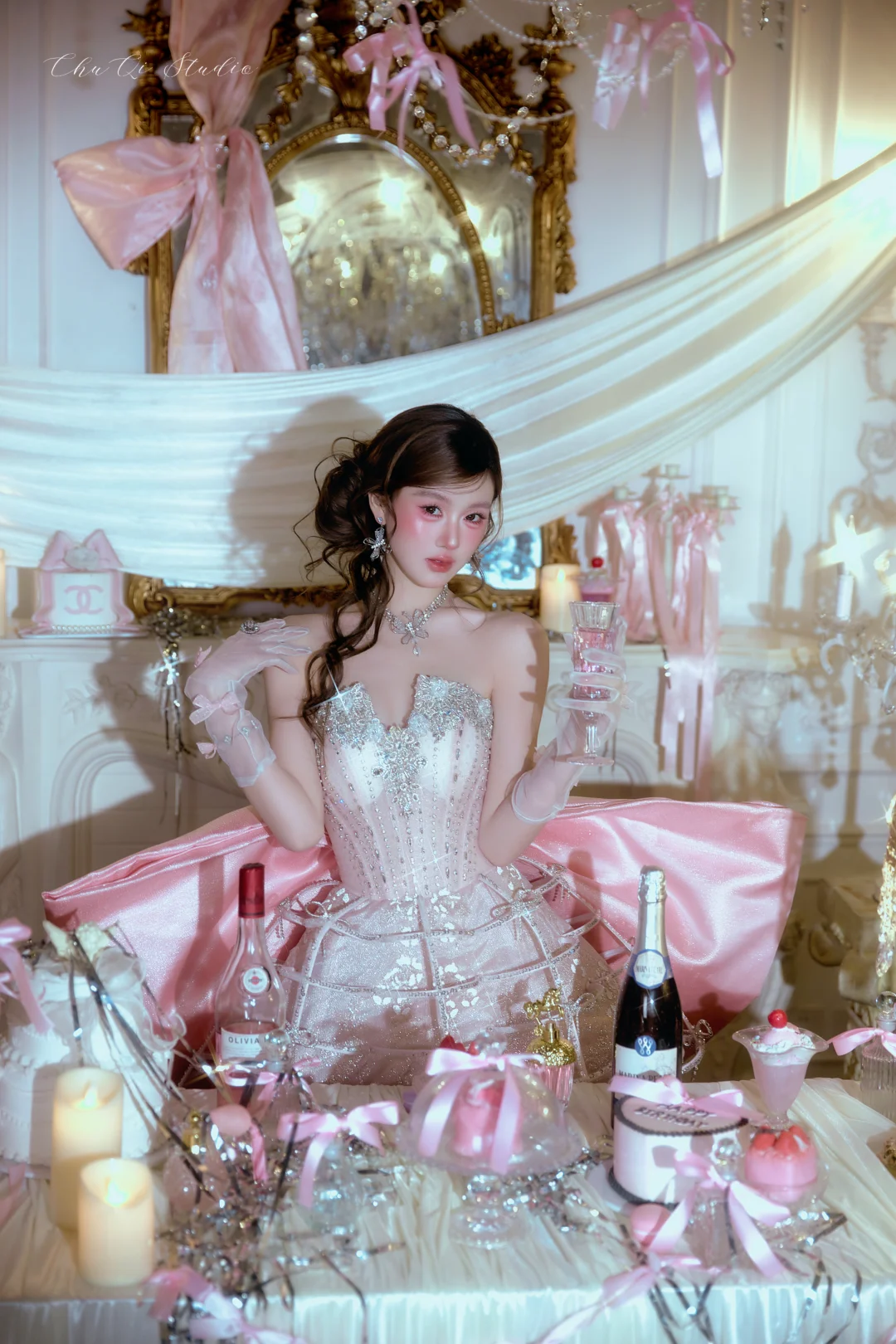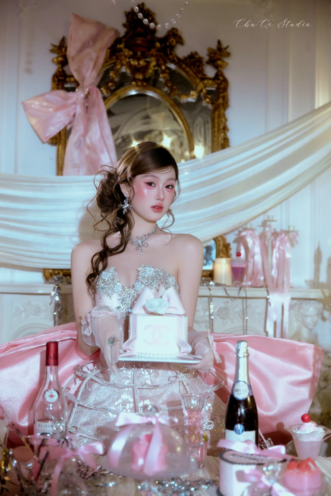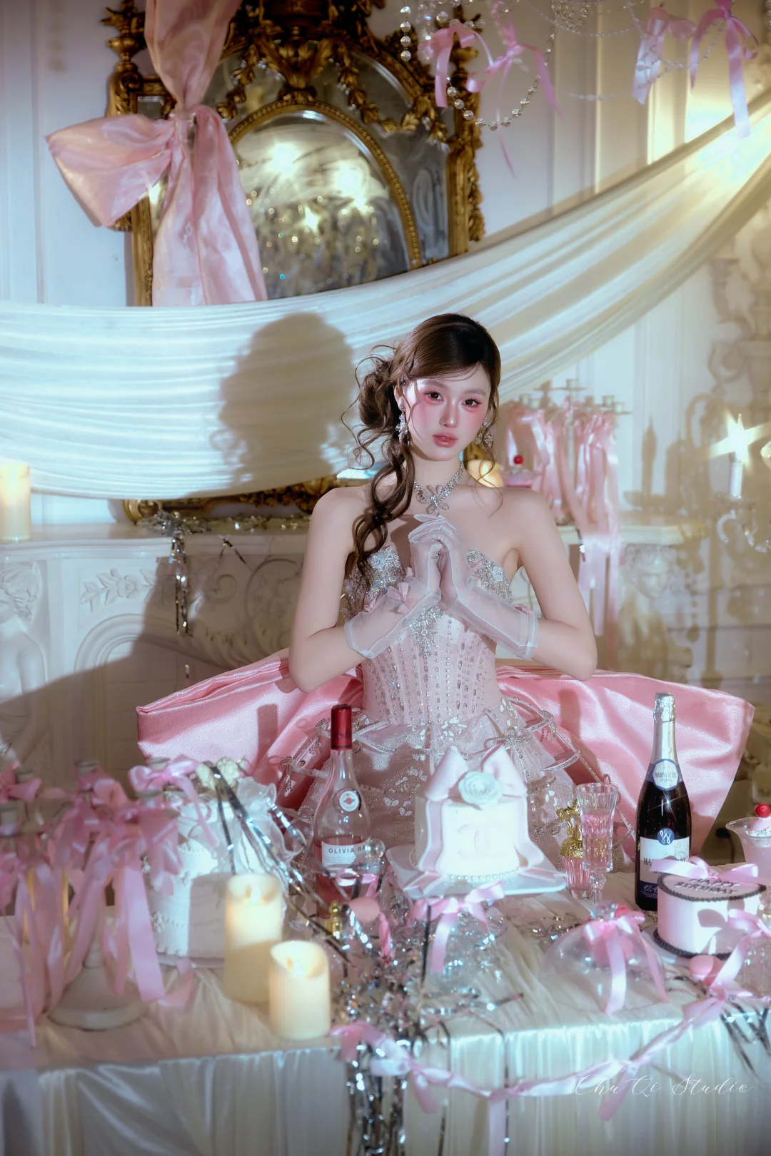 ✅烛光布景+香槟蛋糕道具,氛围感拉满