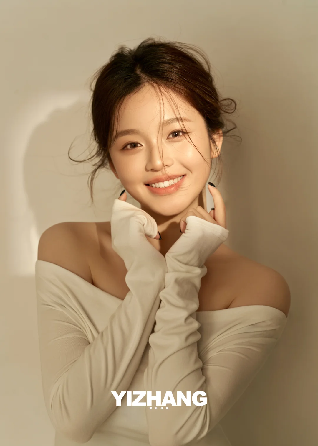慵懒的丸子头+简单的白上衣,高级又耐看