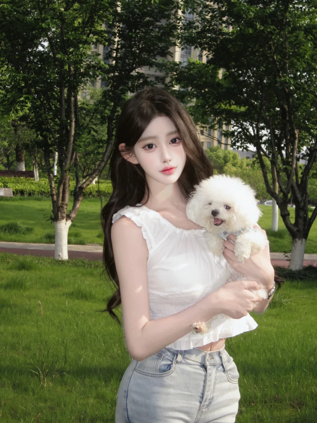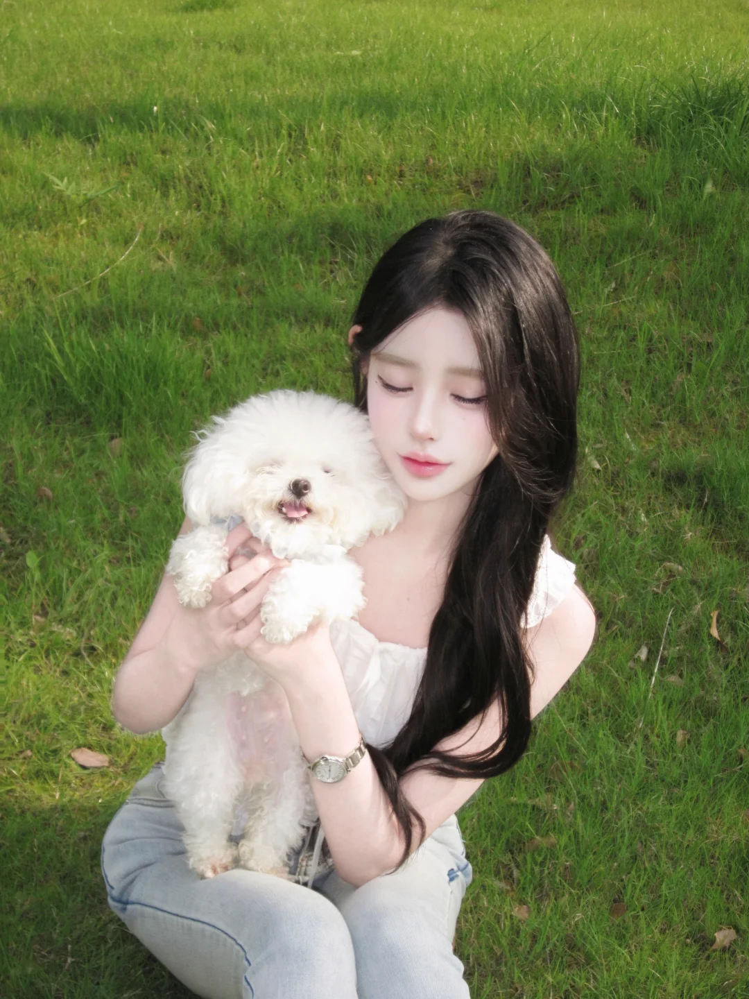 阳光明媚的日子里,花丛中静坐着一位风姿绰约的姑娘,那画面堪称绝妙。和煦的阳光如丝