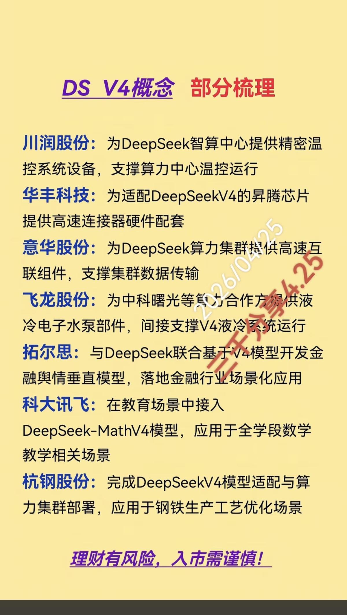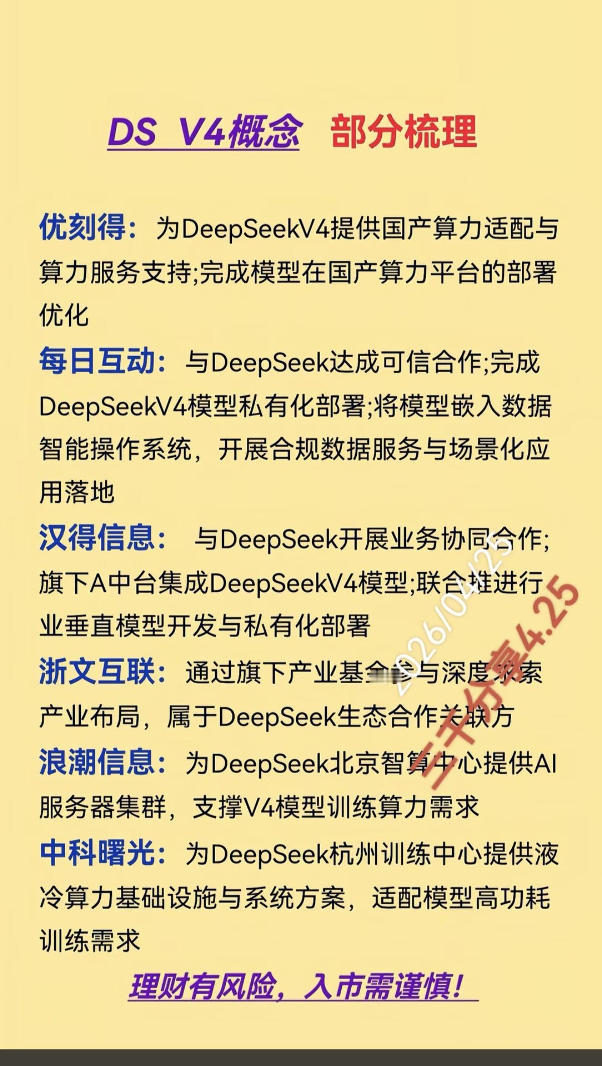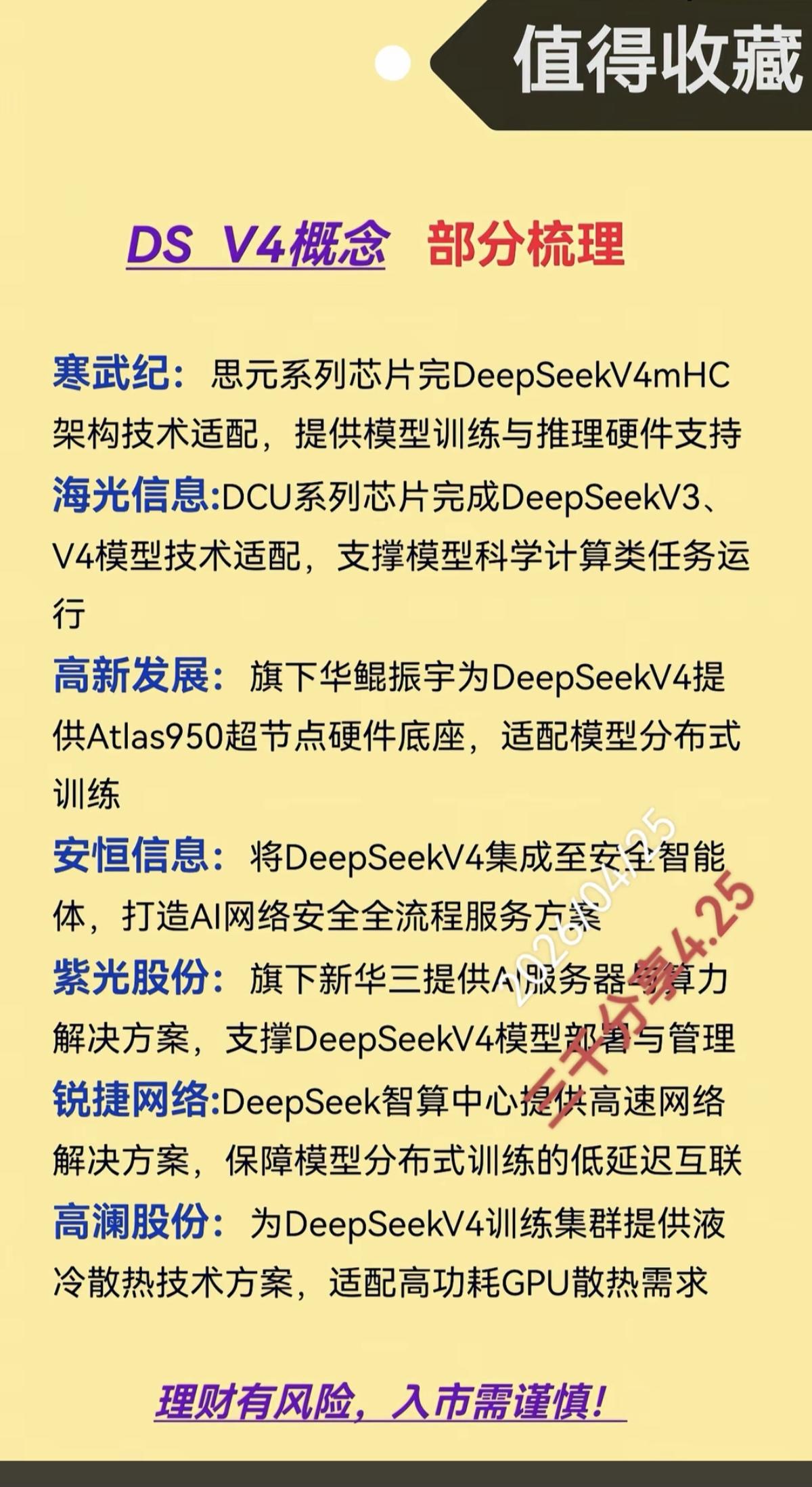 Deepseek V4.0正式上线!深度解析 核心龙头关联龙头股整理: 1.