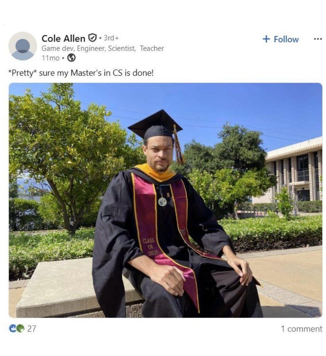 枪手身份(已查明),艾伦,31岁,美国南加州洛杉矶托伦斯市,兼职教师(考试培训)、游戏开发者。2017加州理工学院机械工程学士,2025加州州立大学计算机科学硕士。