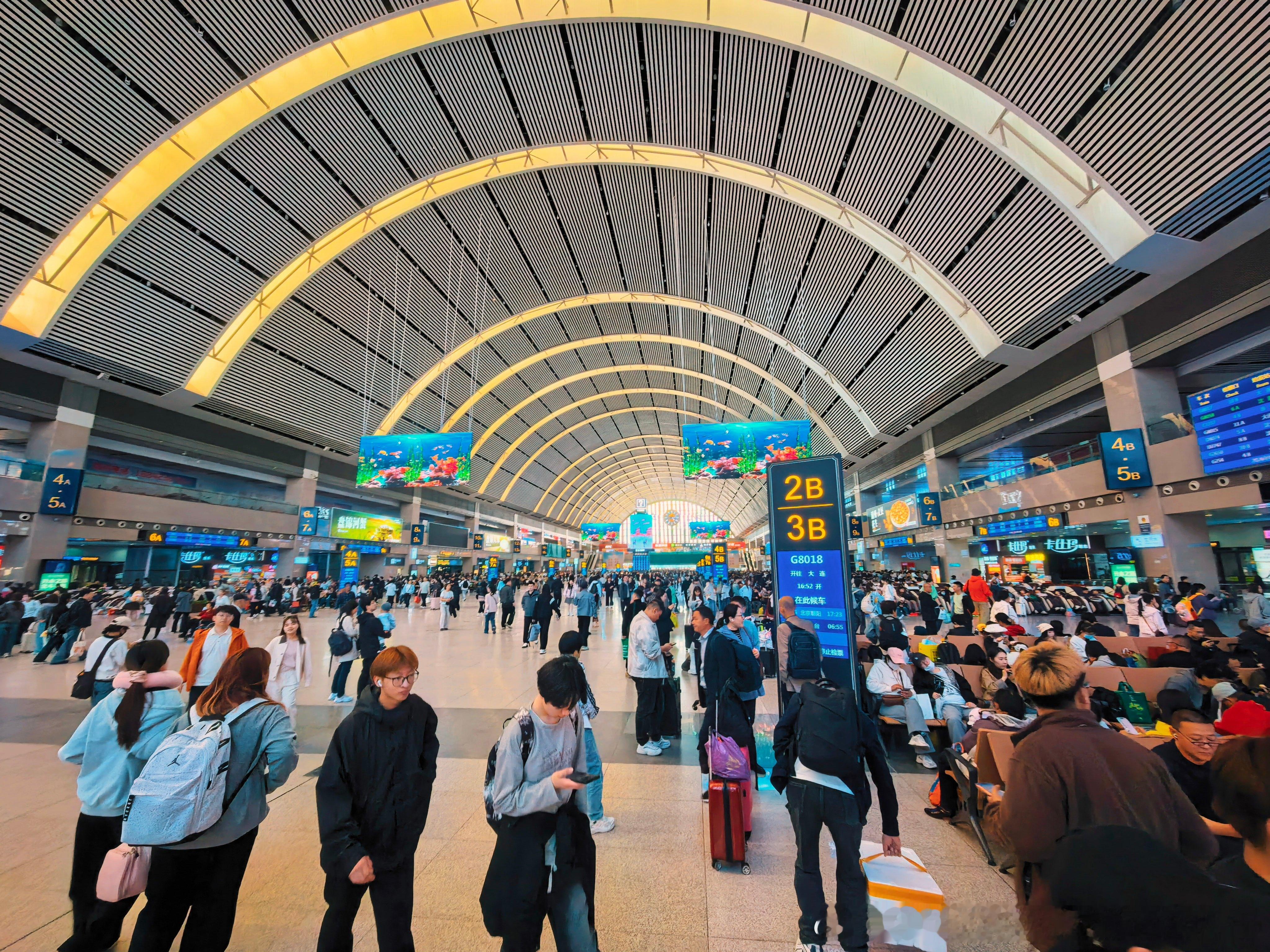 沈阳地铁沈阳铁路 网友投稿: 2026年4月26日(周日)沈阳地铁及沈阳火车站客流如下:15点20分,沈阳地铁2号线沈阳北站站—青年大街站客流(图1-2)。16点,沈阳地铁青年大街换乘客流(图3-5)。16点05分,沈阳地铁1号线青年大街站—南市场站区间(图6)。16点10分,沈阳局铁路沈阳火车站候车室客流(图7)。沈阳火车站车站大屏换新,这次换新后车站信息一目了然。附沈阳火车站新裸眼3D广告屏(图8)。——网友希望沈阳地铁四期尽快批复7号线,以解决沈阳地铁1号线沈阳站的客流压力。