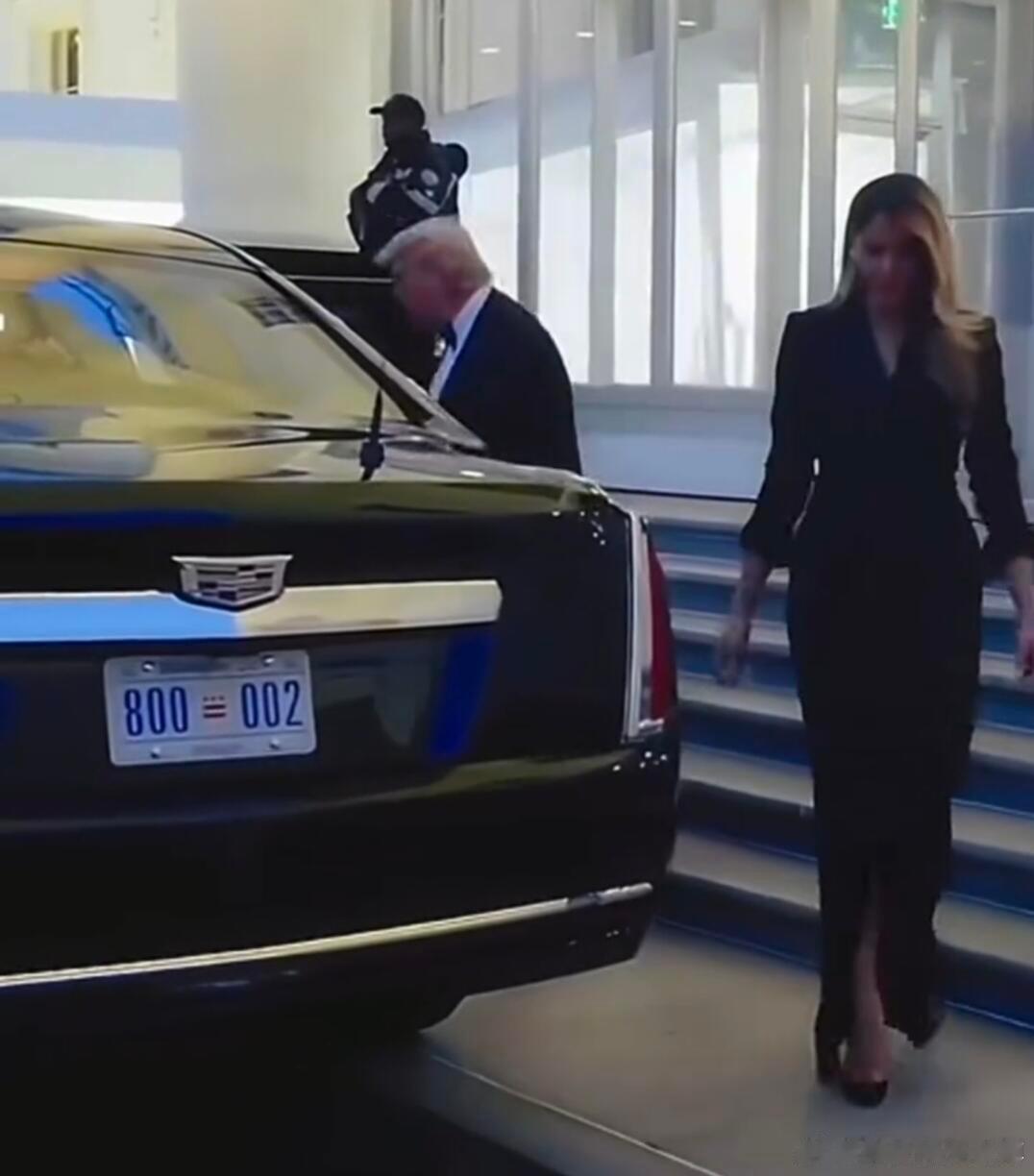 特朗普说他妻子躲得更快 逃离枪击现场都如此优雅,风度翩翩,不服不行!帅哥美女,太有气质了,快八十岁的人了,和老婆手腕上走下台阶。保镖拉开凯迪拉克的车门,夫妻二人坐进车里。