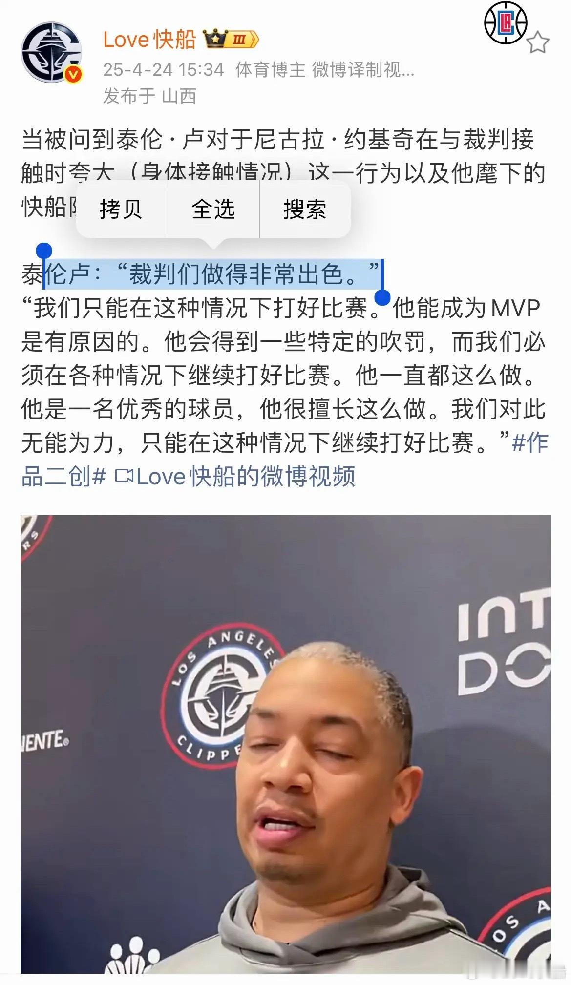 季后赛是拼刺刀的时刻,而不是你夸完裁判且系列赛还没结束夸对方球员的时候