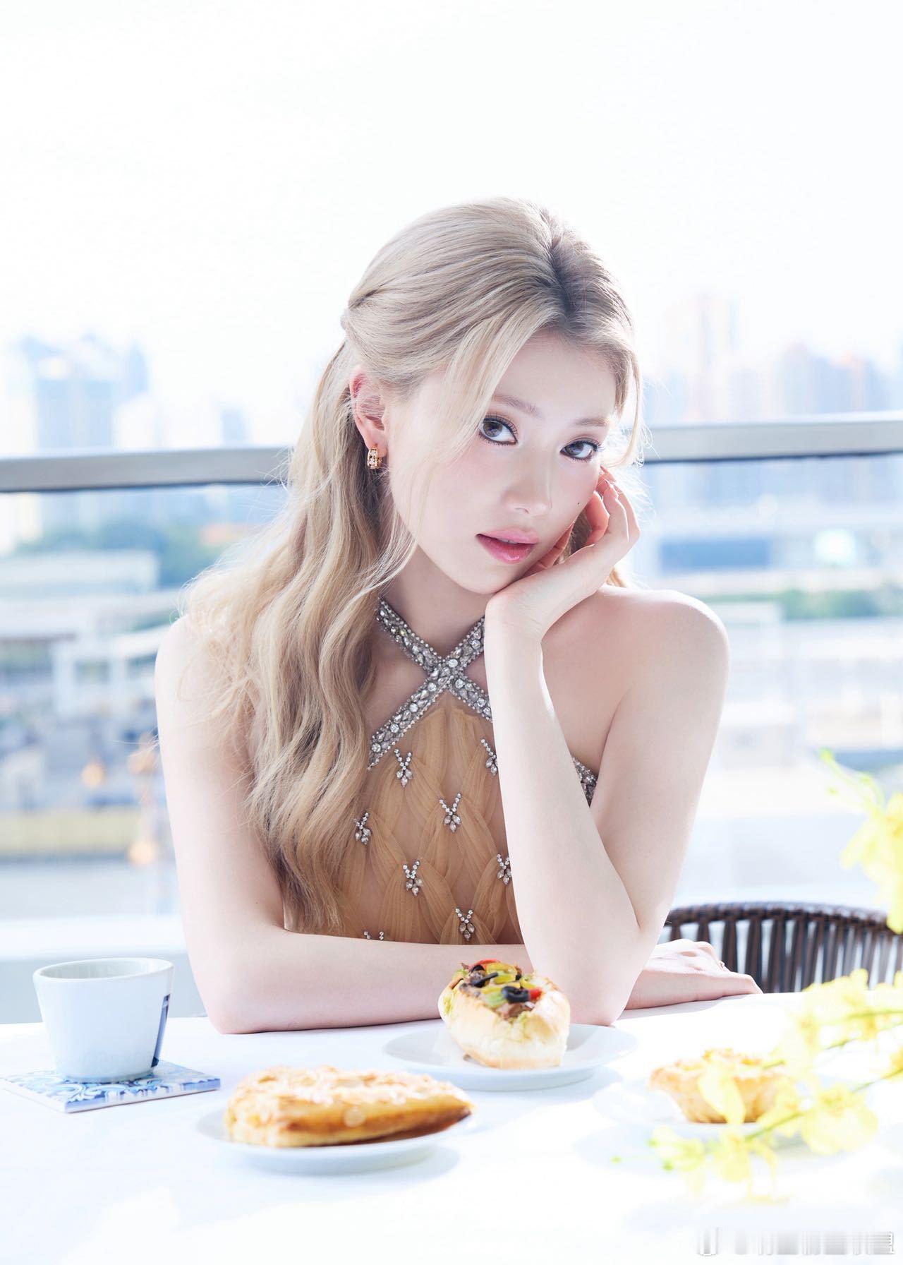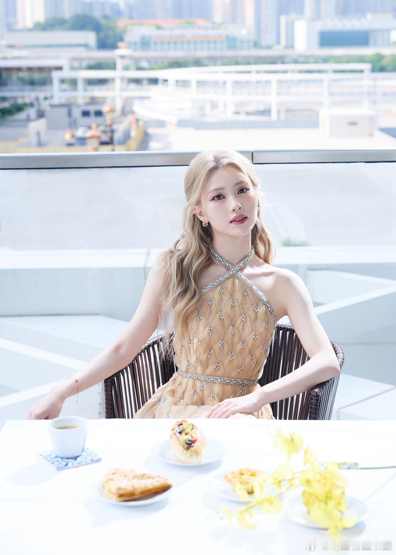 沈小婷鎏金慵懒假日 沈小婷简直是人间富贵花!鎏金纱裙搭配精致编发,清冷金发美人既