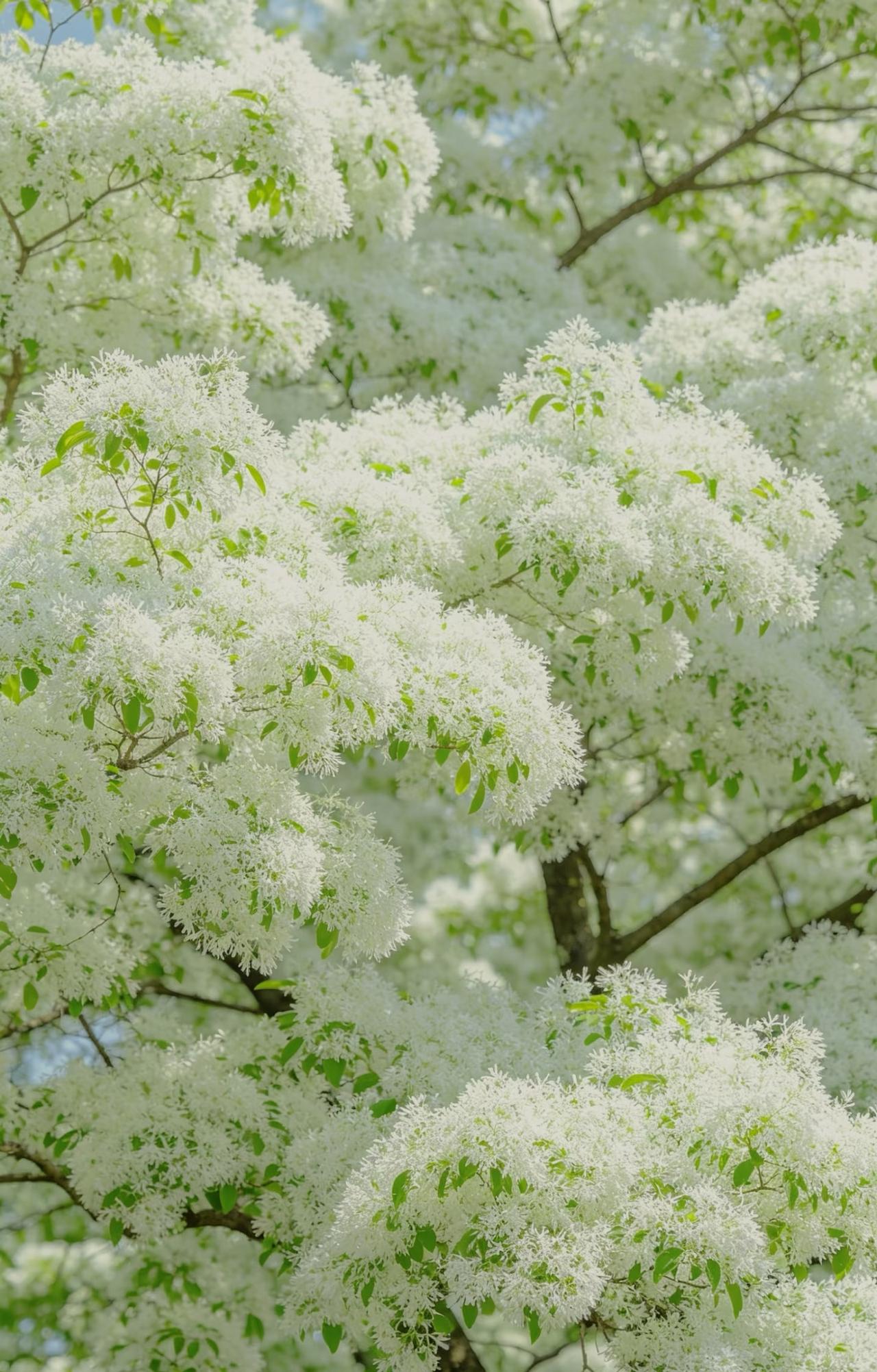 手机壁纸~春末的限定浪漫,是流苏树给的。满树白花如云似雪,细碎的花瓣缀满枝头,风一吹,便簌簌落下满树温柔,把春日的清甜与治愈都藏进了这漫天素白里