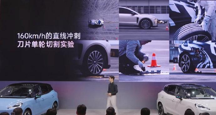 直线刀片切割单轮爆胎,80万级的蔚来ET9挑战成功,MG4更进一步,它做的是直线刀片切割双轮爆胎,同样挑战成功。