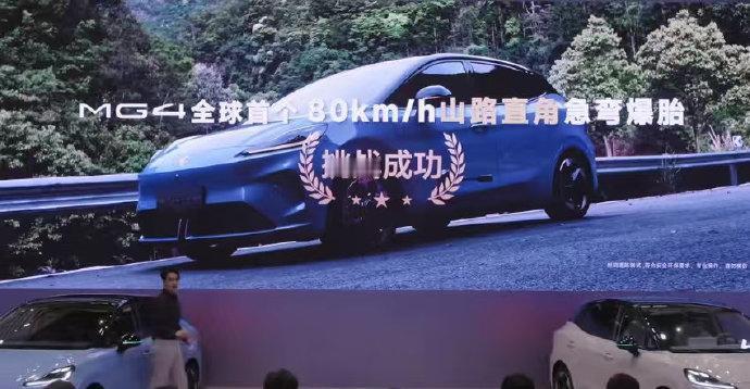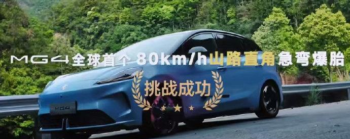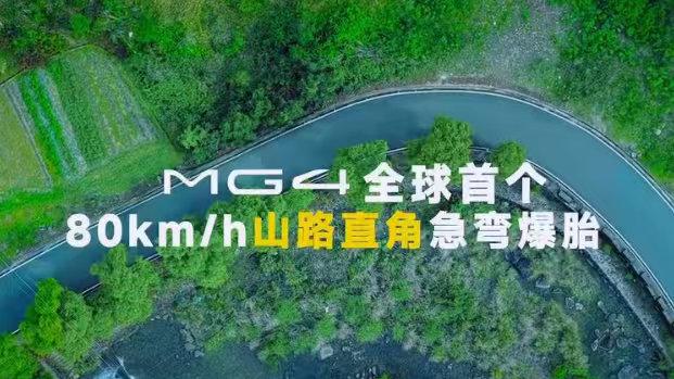 另外,MG4额外完成了一项全球首次:80km/h的山路弯道对角线双轮极限爆胎。