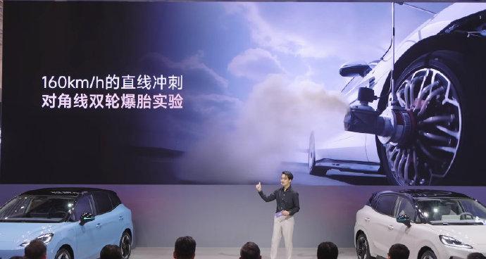 测试时速均为160km/h,直线对角线双轮爆胎和直线同侧双轮高速爆胎两个项目,60万级的仰望U7挑战成功,10万级的MG4也挑战成功。