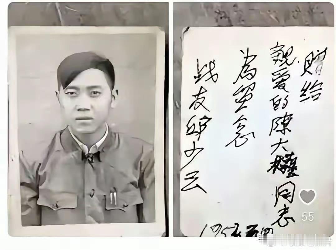1952年,邱少云同志送给战友陈大权的照片,从照片上看邱少秋浓眉大眼,五官端正,留着偏分的时髦头型,他也是一个爱漂亮的年轻小伙!