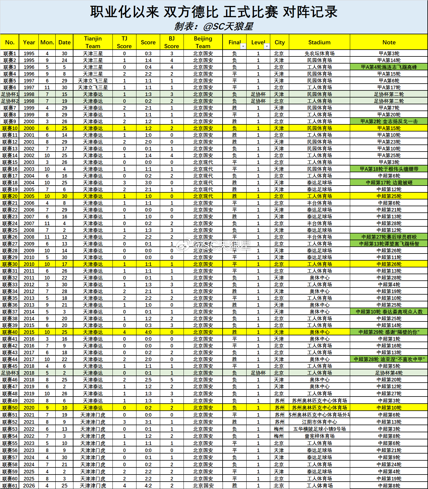 9. 本场比赛打入6球,是职业化以来,津门虎和国安61次交锋中,进球第二多的比赛。单场进球最多的比赛,是2018赛季,泰达主场2:5国安(P9)