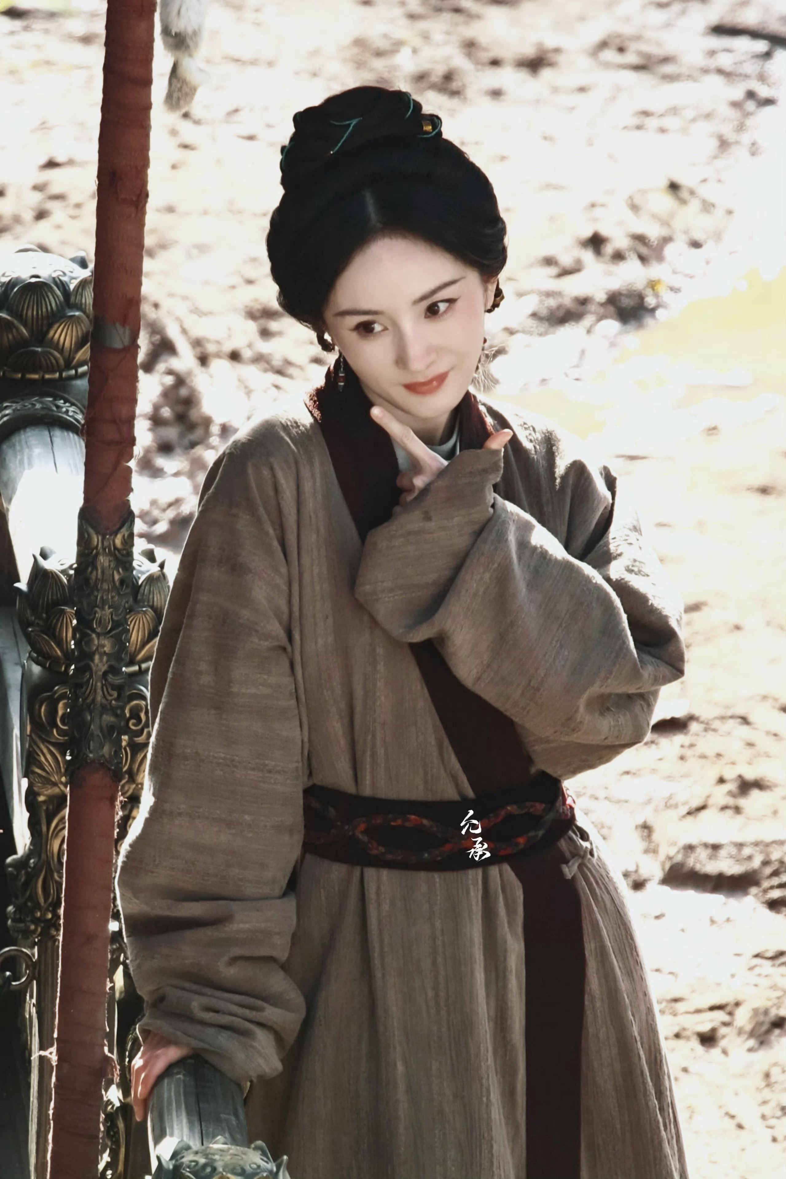 杨幂冯太后盘发造型路透 这两天的冯太后,完全沉浸在冯湮儿的月牙笑和美萌美萌里~