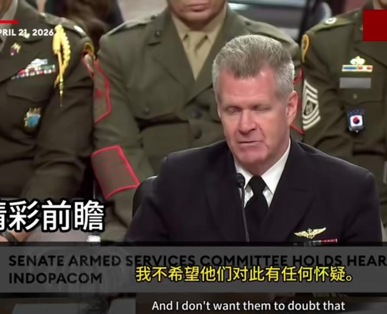 美国海军上将,现任美国印度太平洋司令部司令帕帕罗在听证会上表示,“……我希望中国民众(从伊朗战争)看到的是,美国会运用能力和意志来应对侵略,我不希望他们对此有任何怀疑。这(场战争)有助于威慑,而威慑是我们的最高职责。”